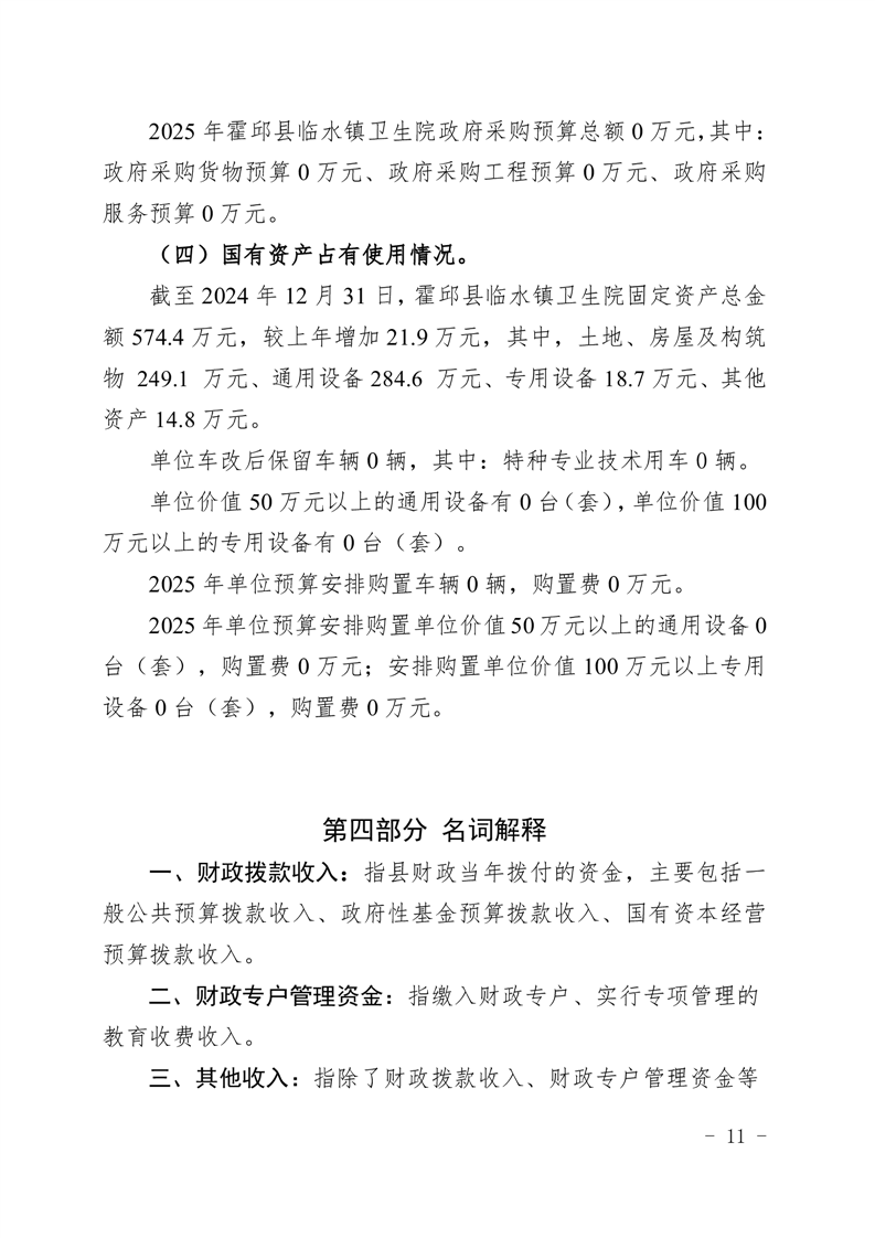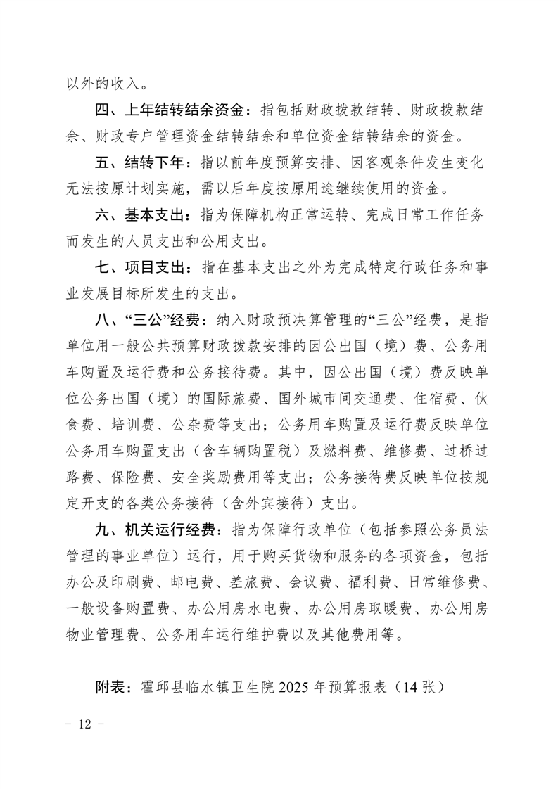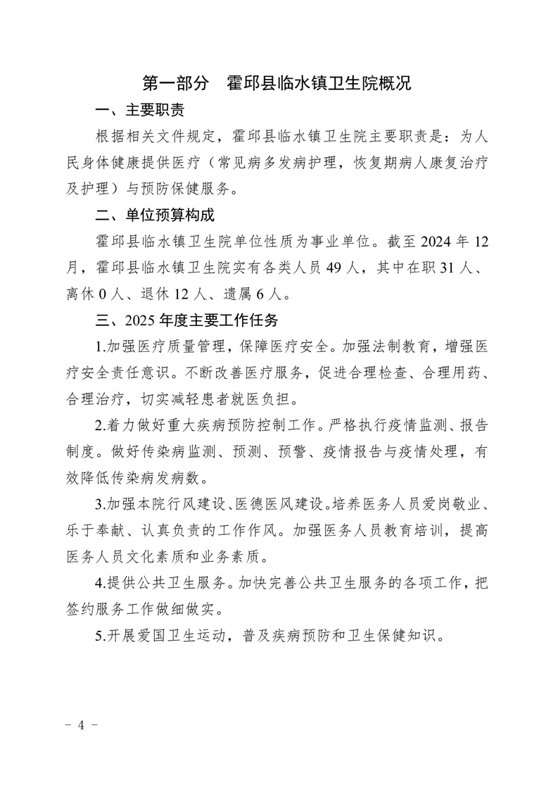 霍邱县临水镇卫生院2025年部门单位预算公开