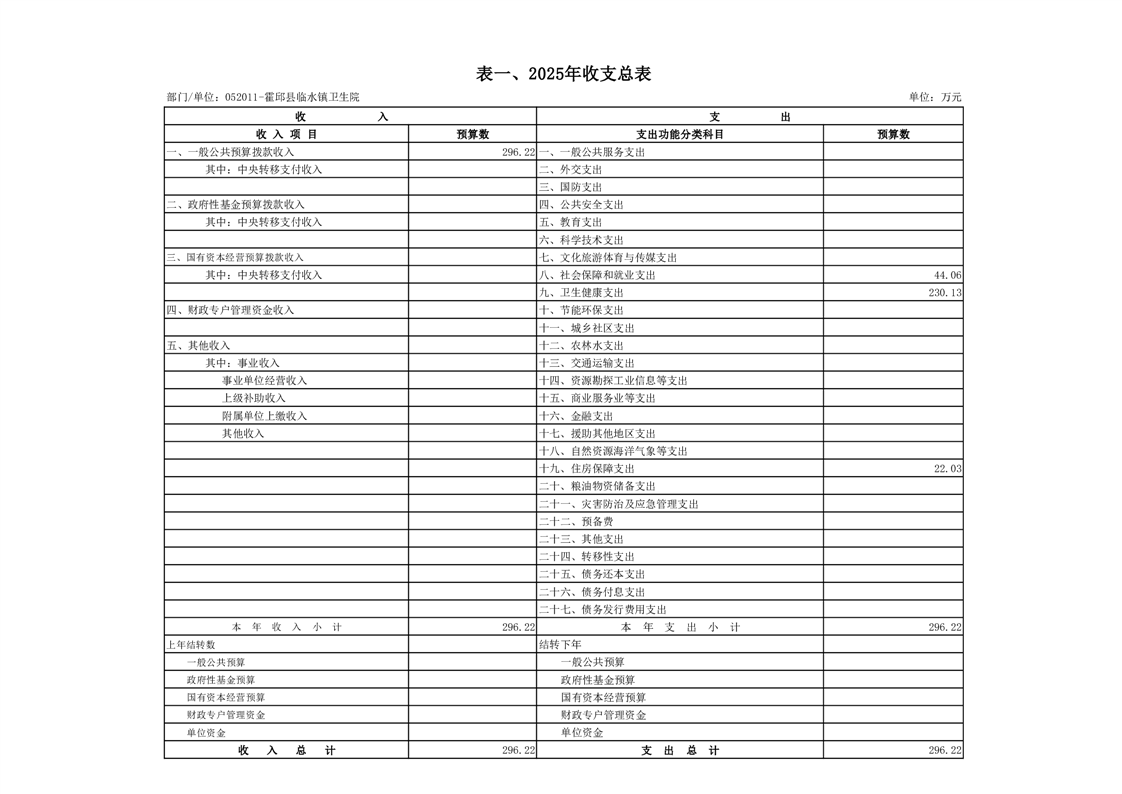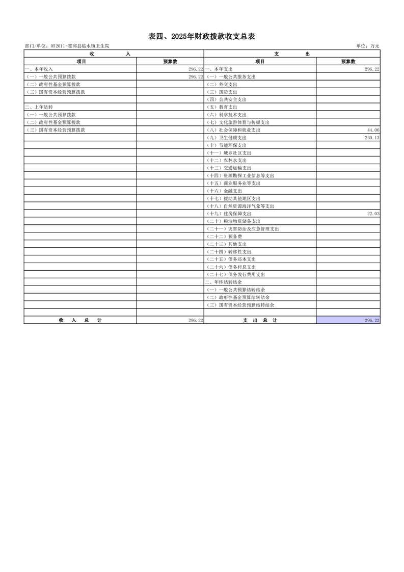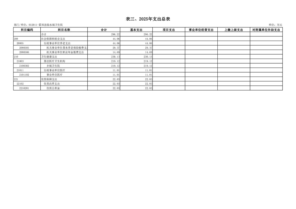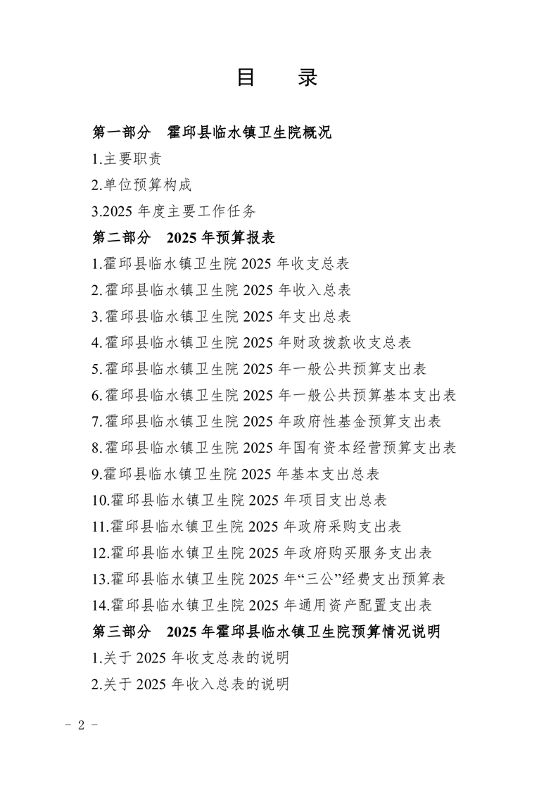 霍邱县临水镇卫生院2025年部门单位预算公开
