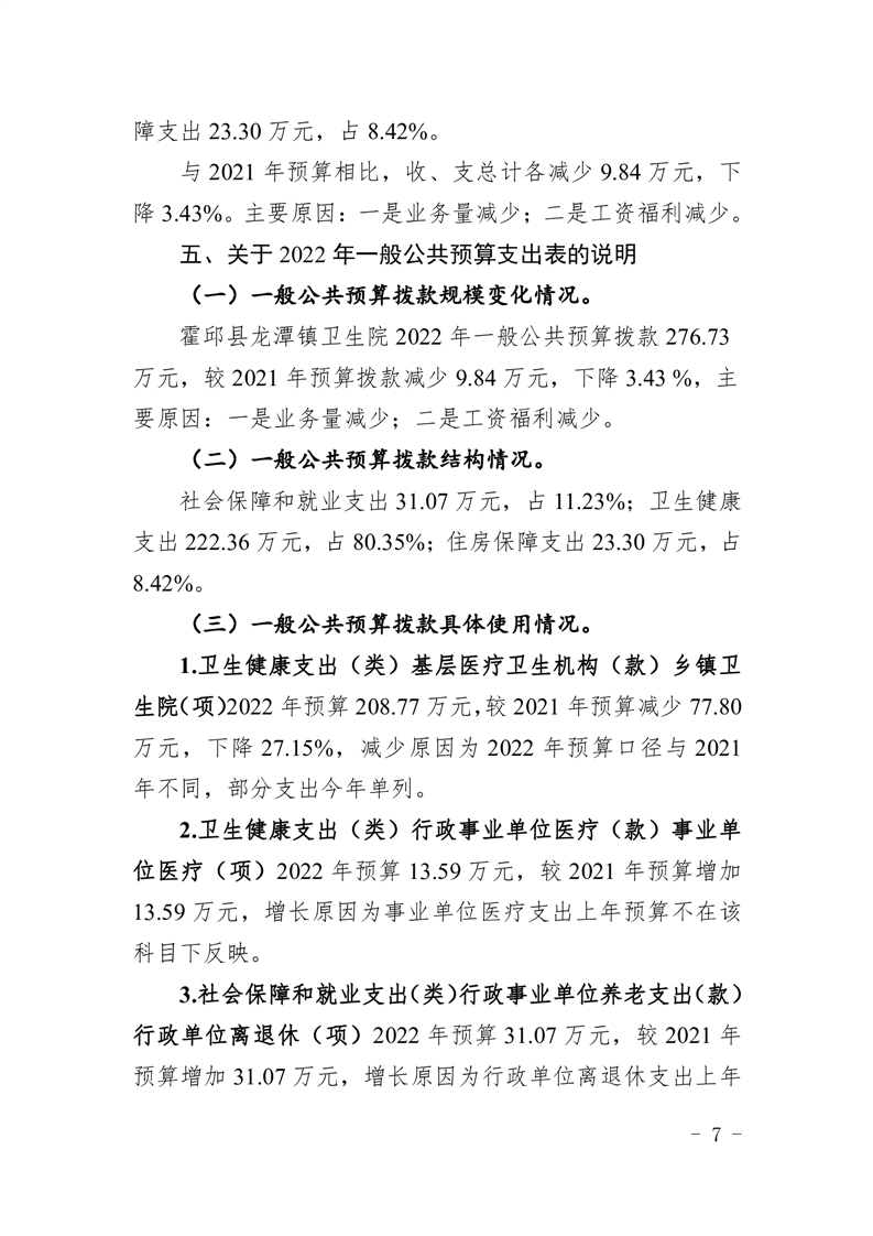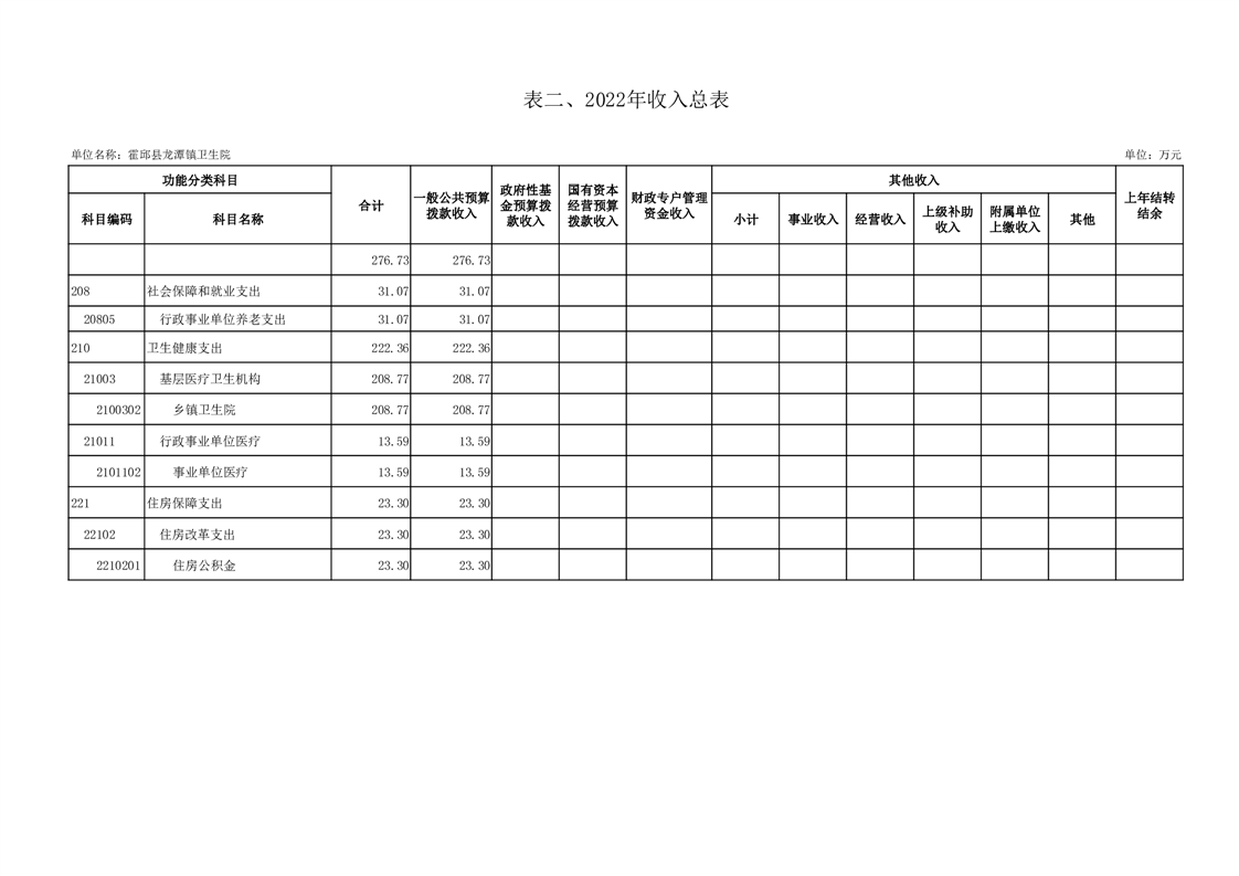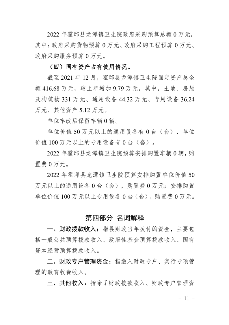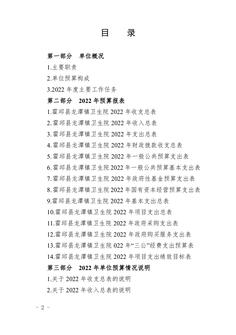 霍邱县龙潭镇卫生院2022年单位预算公开