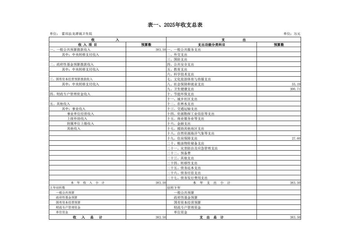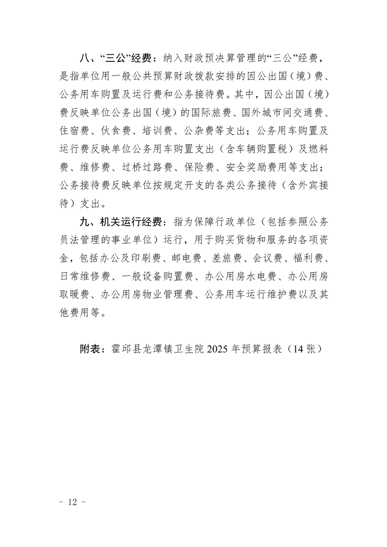 霍邱县龙潭镇卫生院2025年部门单位预算公开
