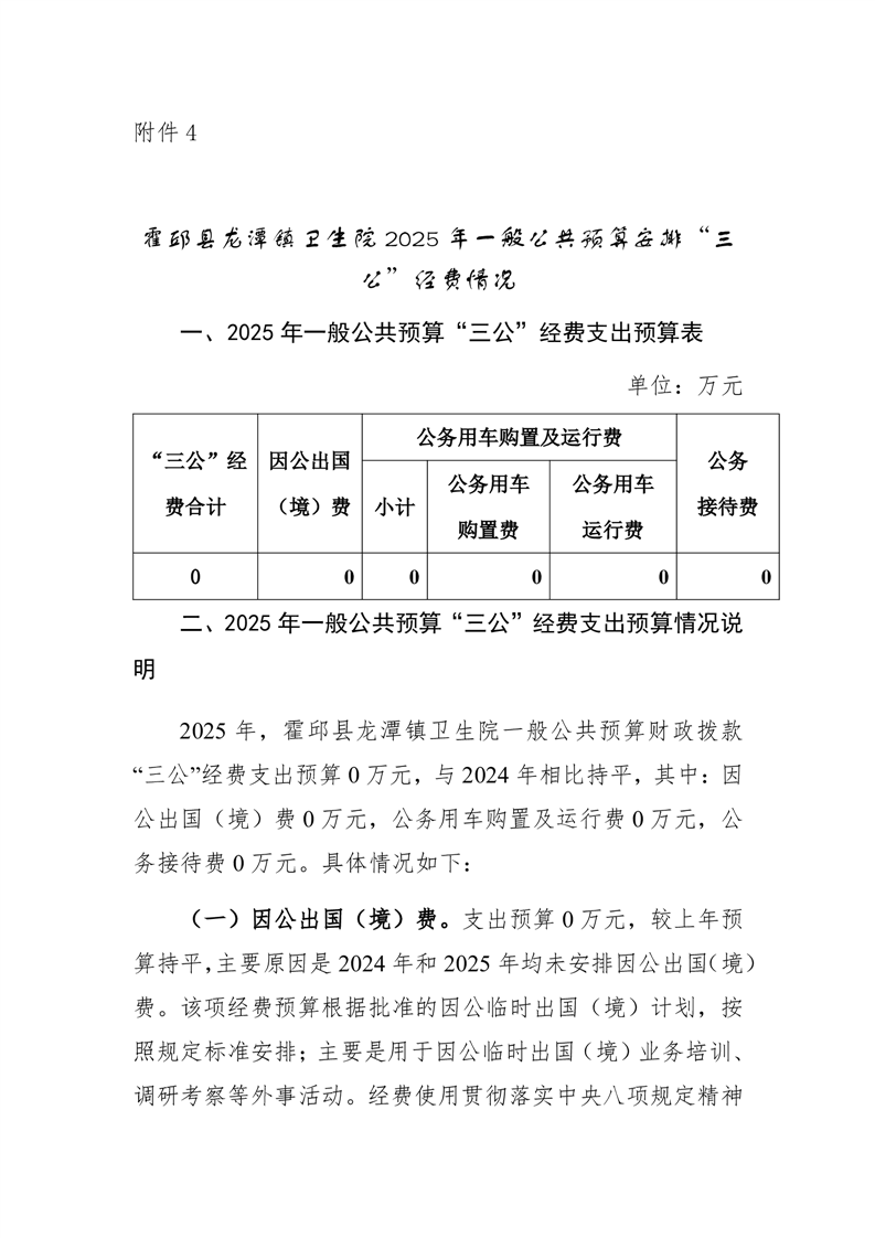 霍邱县龙潭镇卫生院2025年部门单位一般公共预算安排“三公”经费情况公开