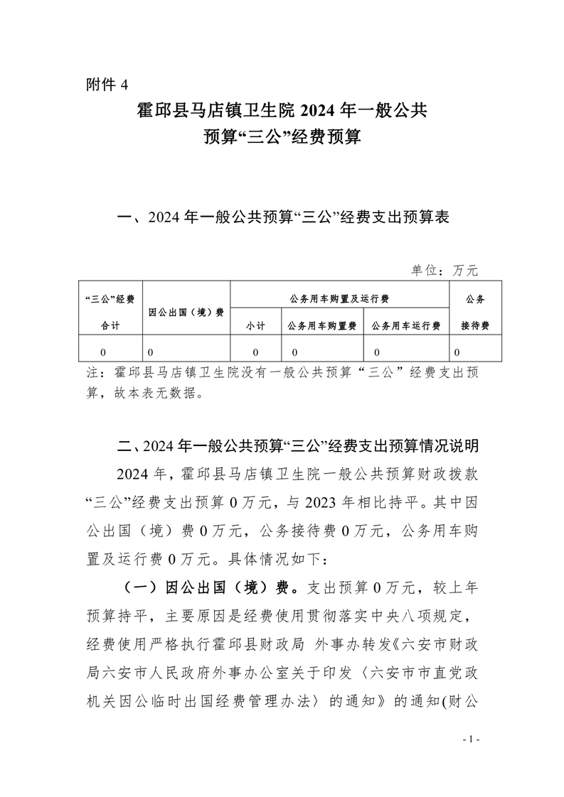 霍邱县马店镇卫生院2024年单位一般公共预算安排“三公”经费情况公开