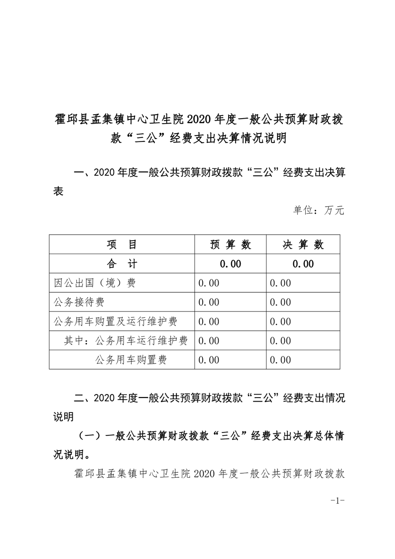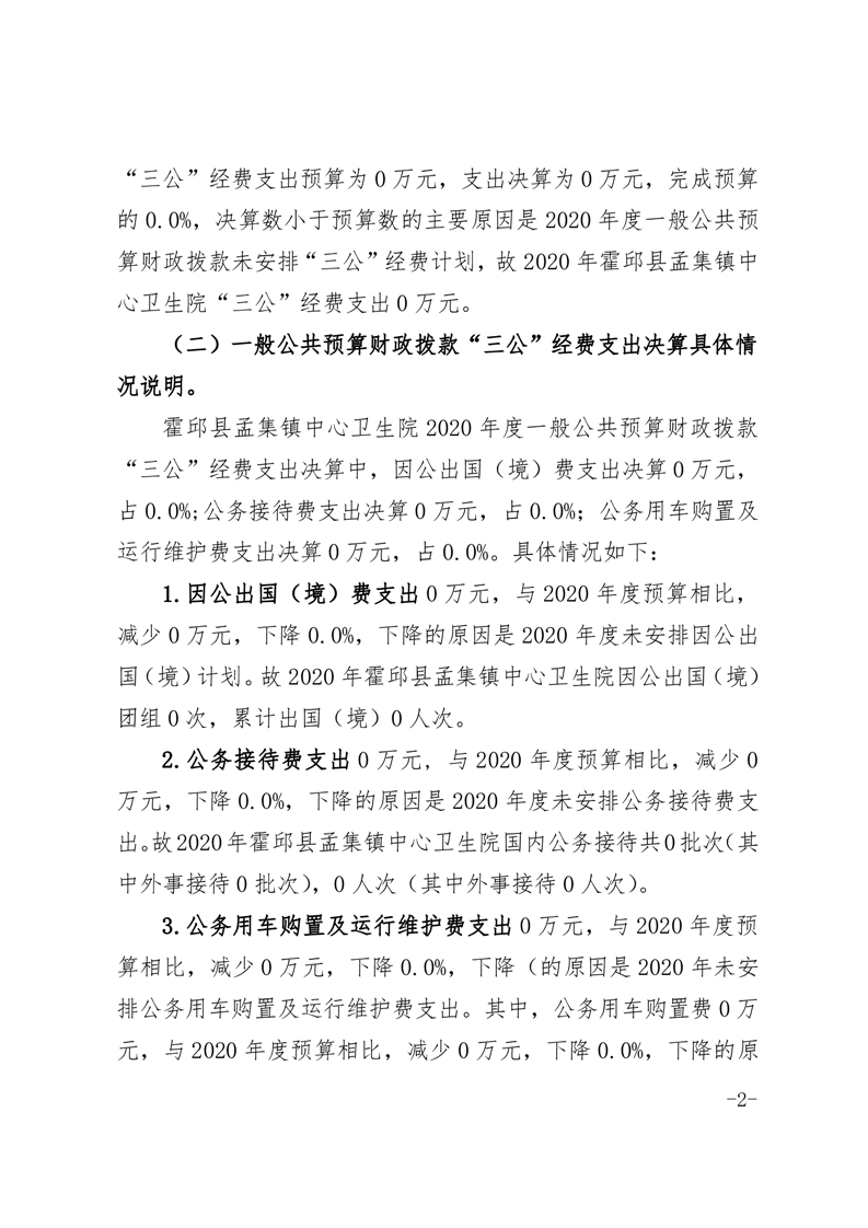 霍邱县孟集镇中心卫生院2020年度一般公共预算财政拨款“三公”经费支出决算情况说明
