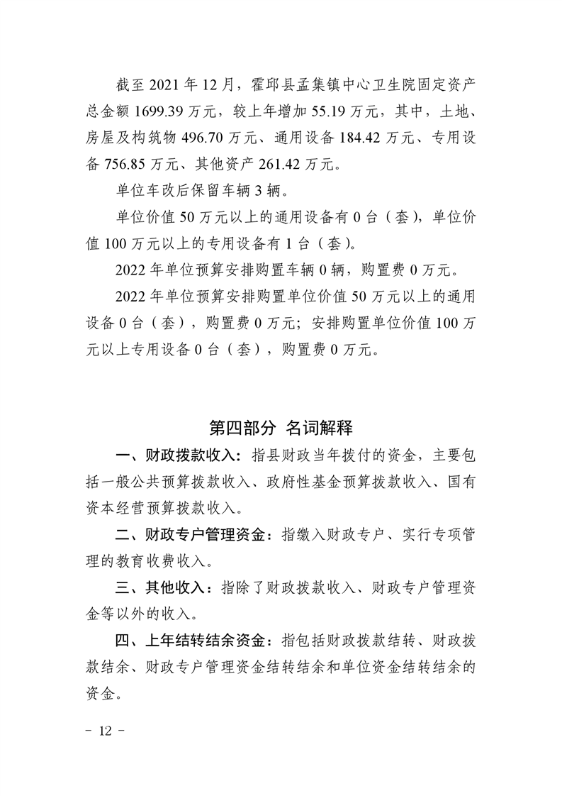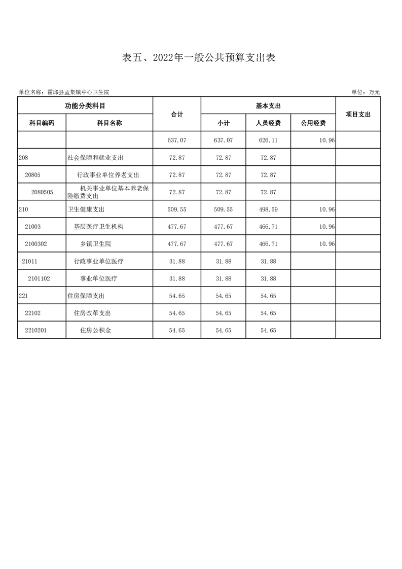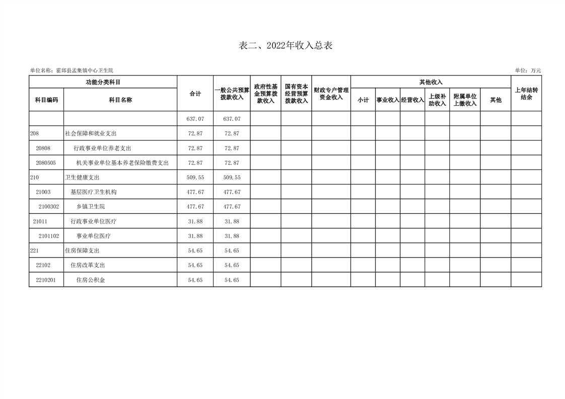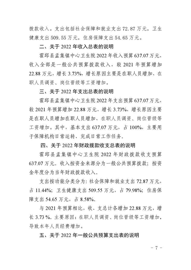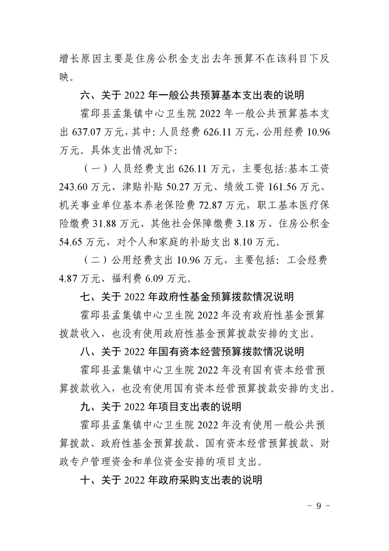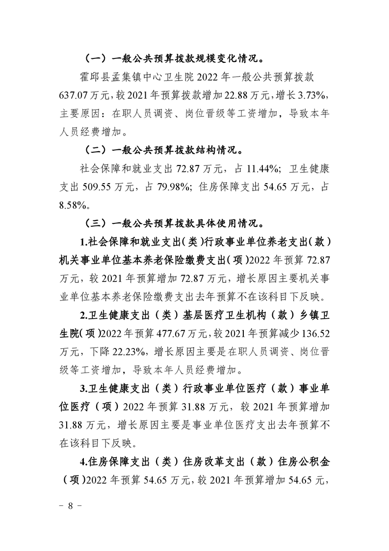 霍邱县孟集镇卫生院2022年部门单位预算公开
