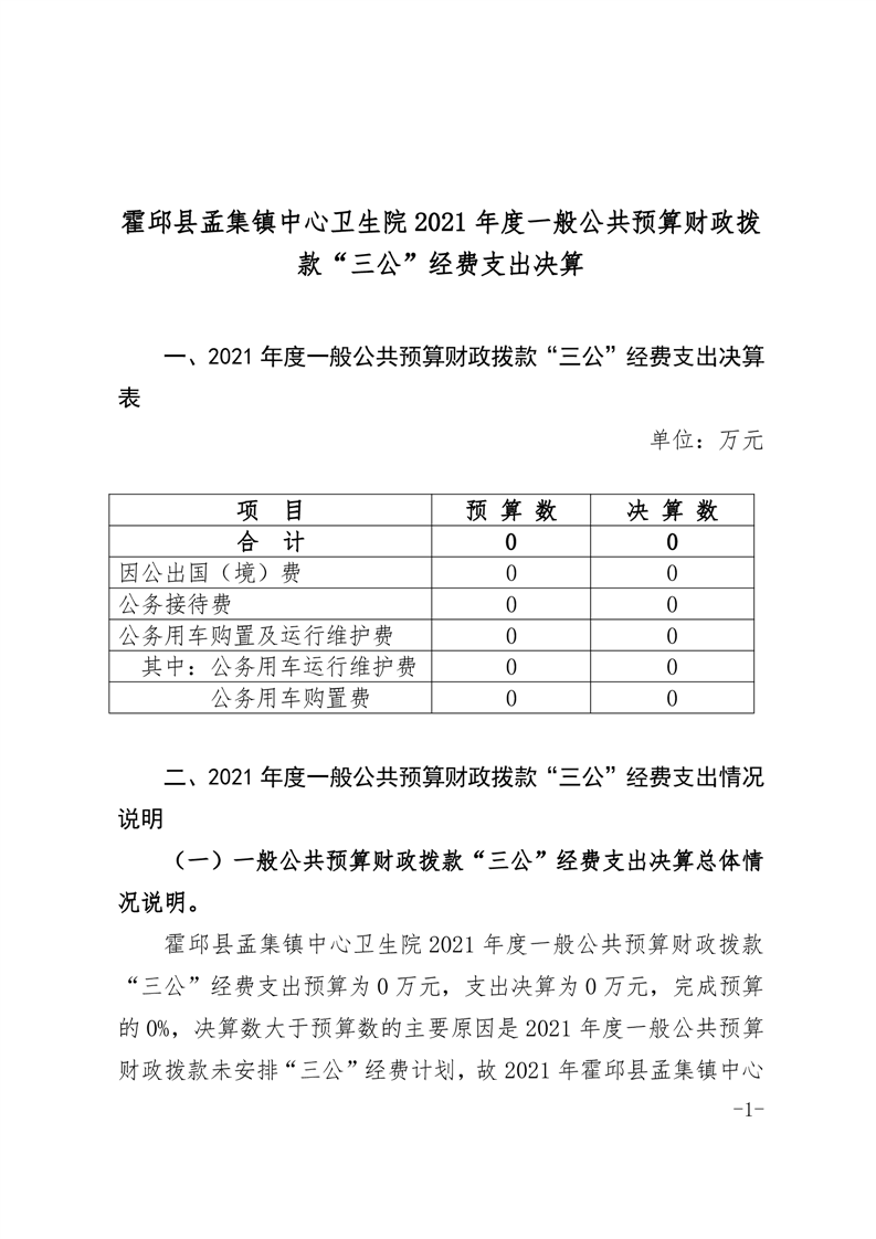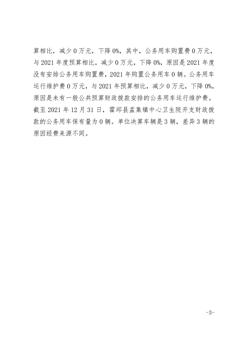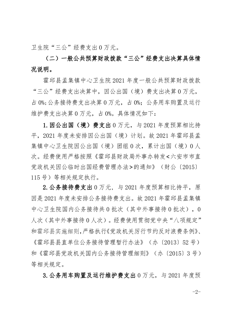 霍邱县孟集镇中心卫生院 2021 年度一般公共预算财政拨 款“三公”经费支出决算