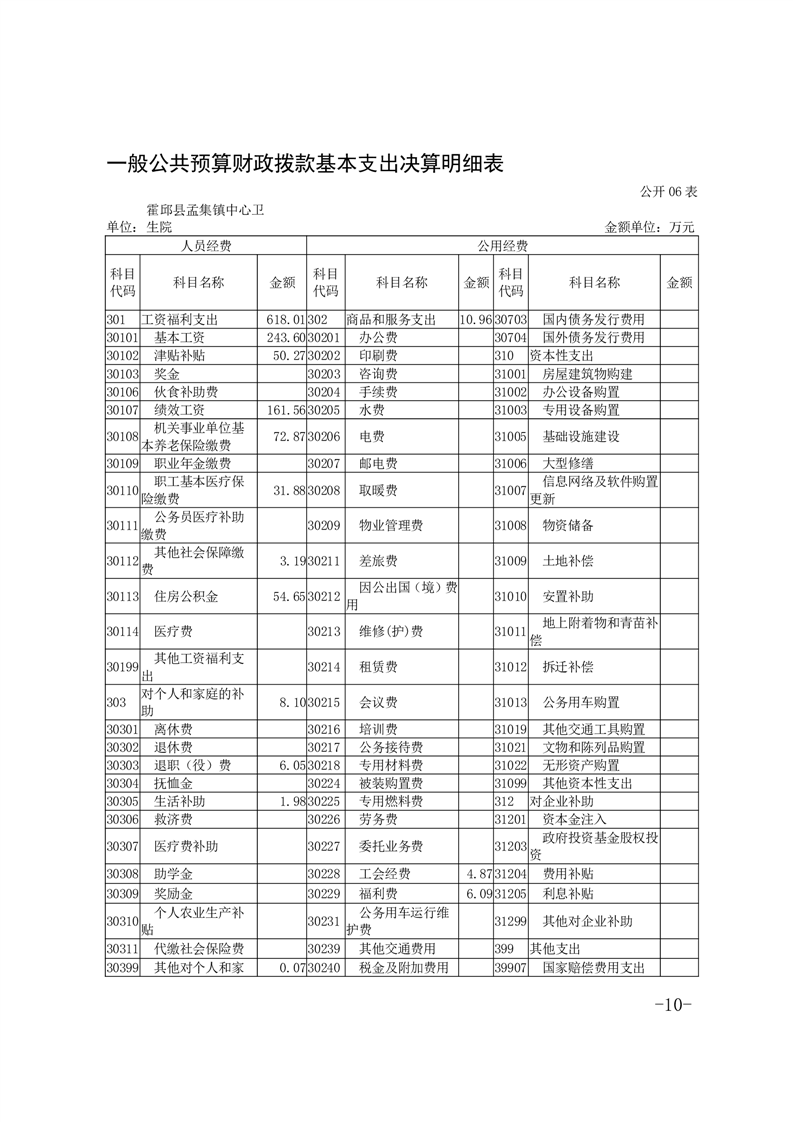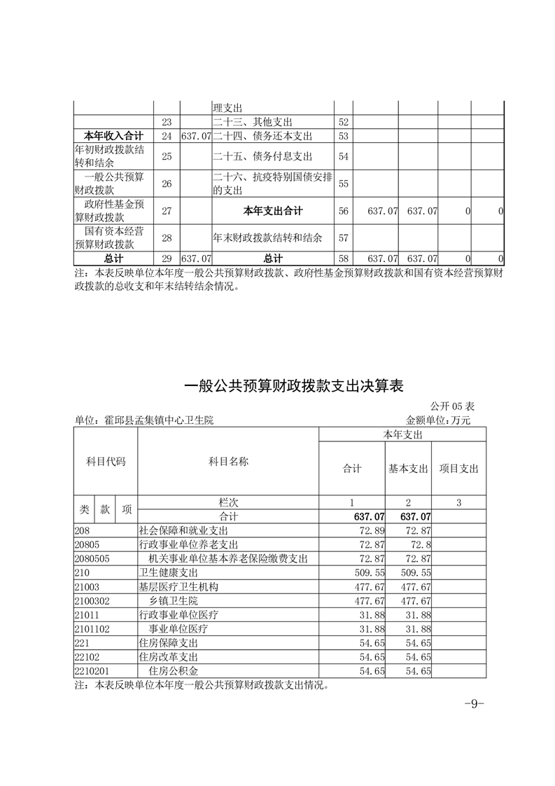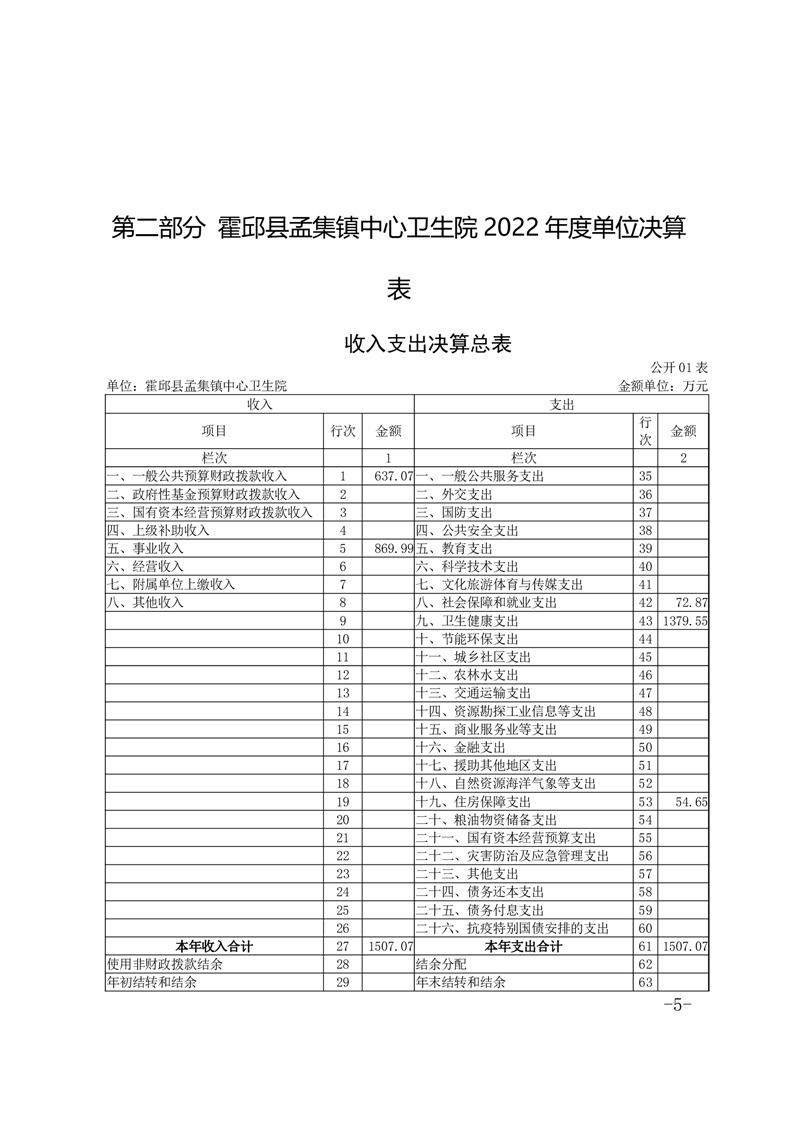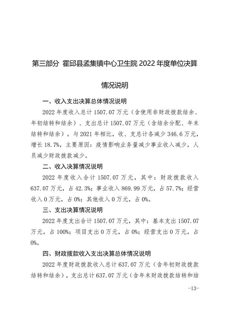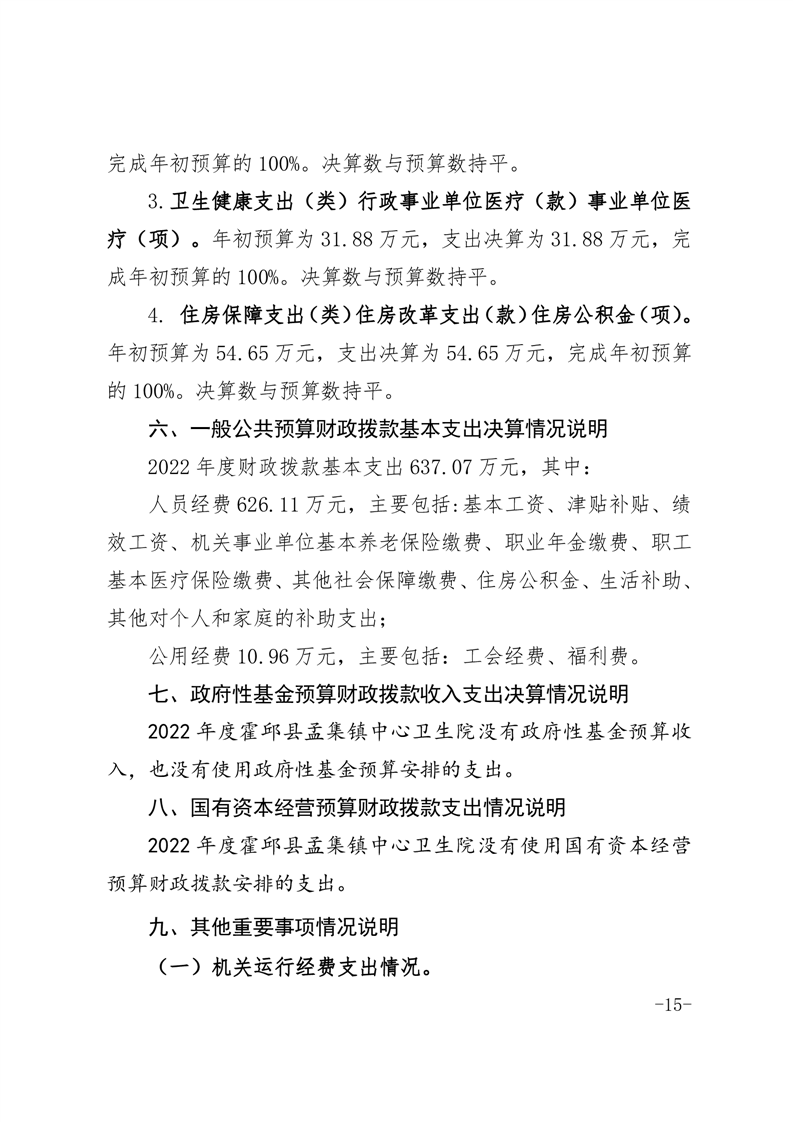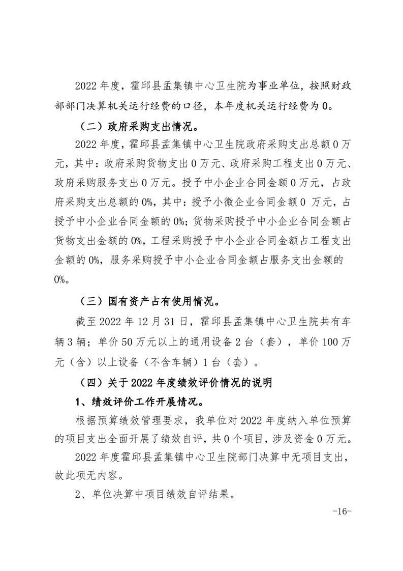 霍邱县孟集镇中心卫生院2022年度决算公开