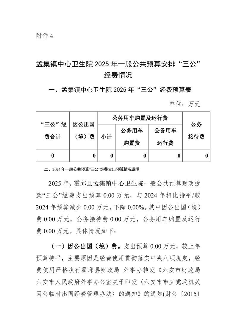 霍邱县孟集镇卫生院2025年部门单位一般公共预算安排“三公”经费情况公开