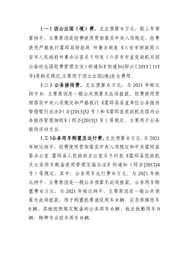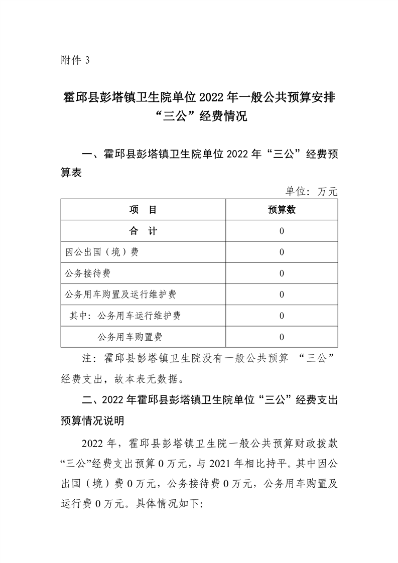 霍邱县彭塔镇卫生院2022年一般公共预算安排“三公”经费情况