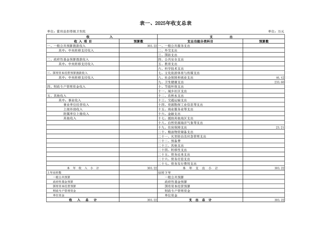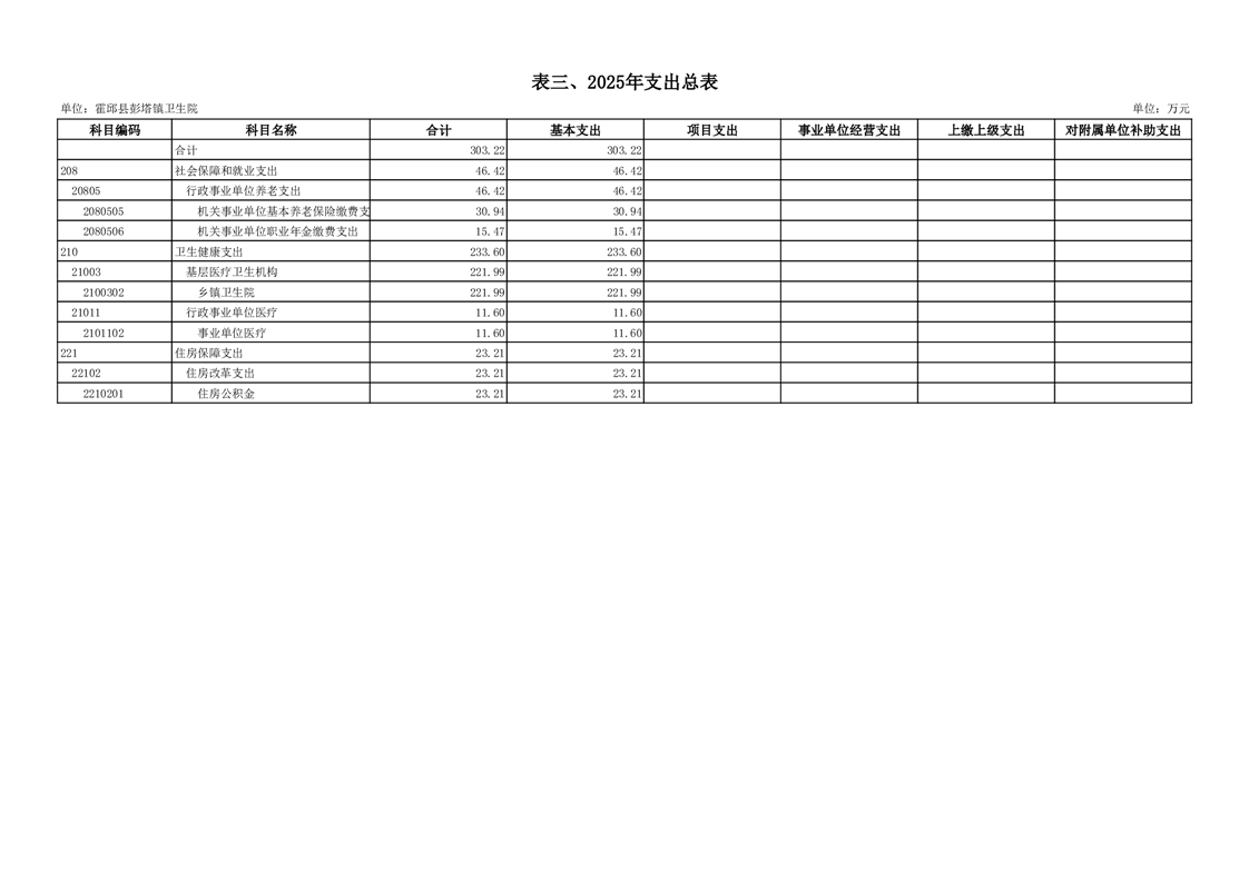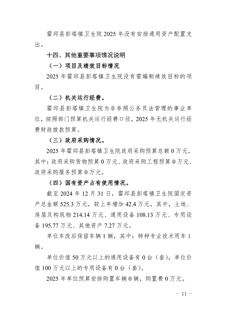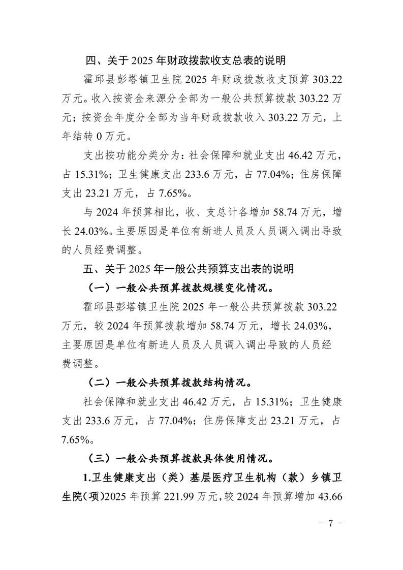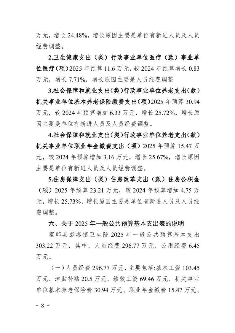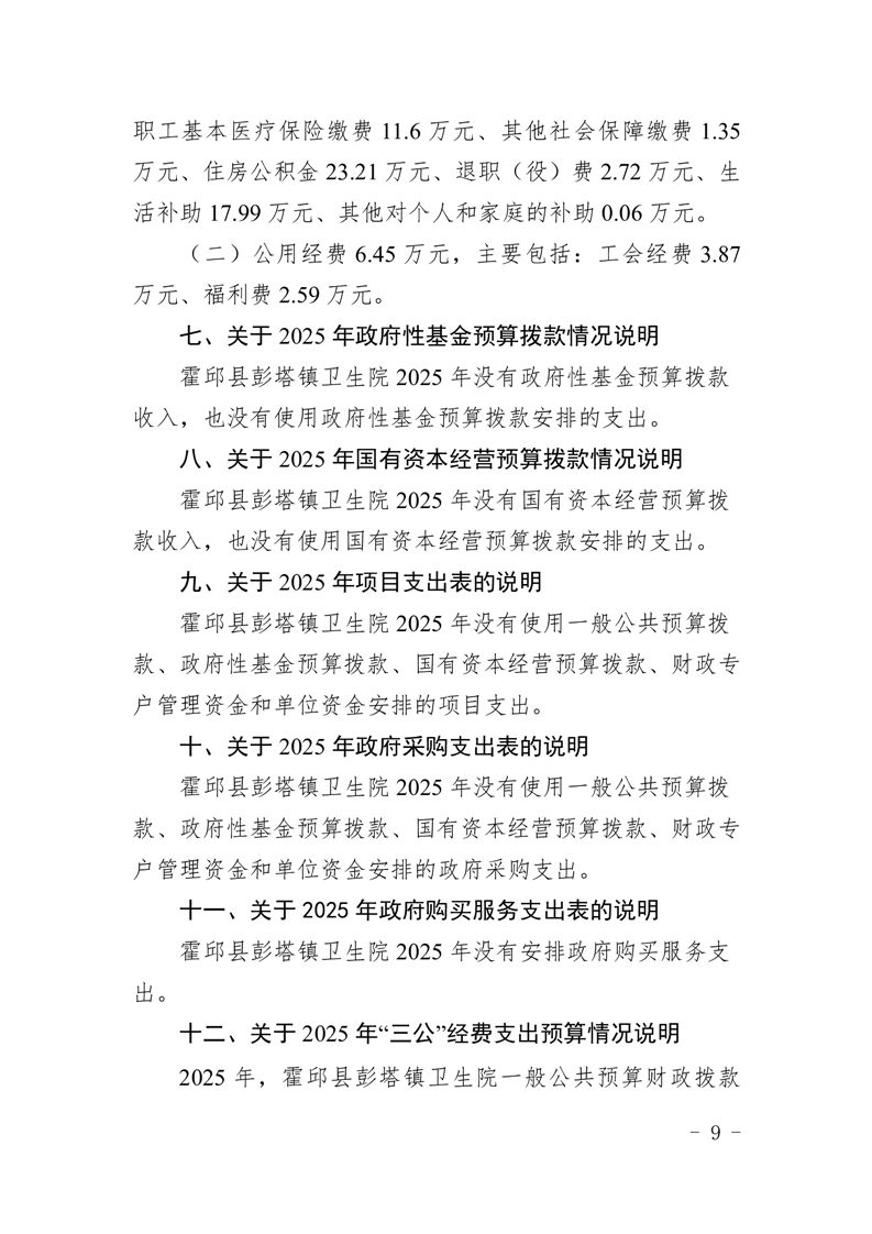 霍邱县彭塔镇卫生院2025年部门单位预算公开