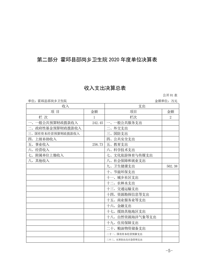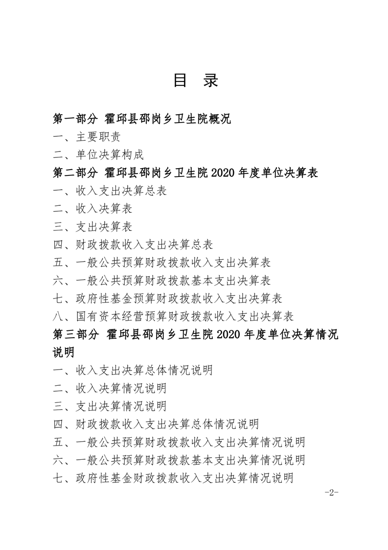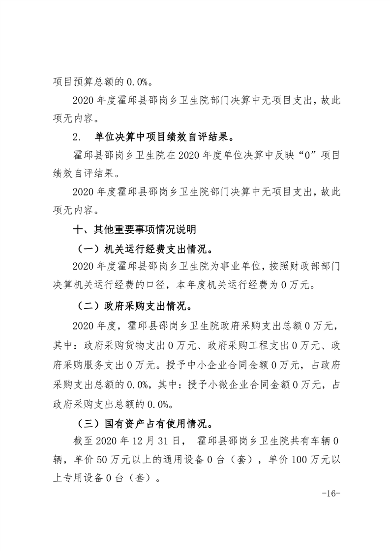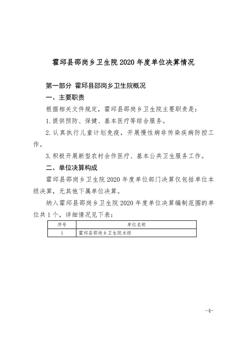 霍邱县邵岗乡卫生院 2020 年度 单位决算公开