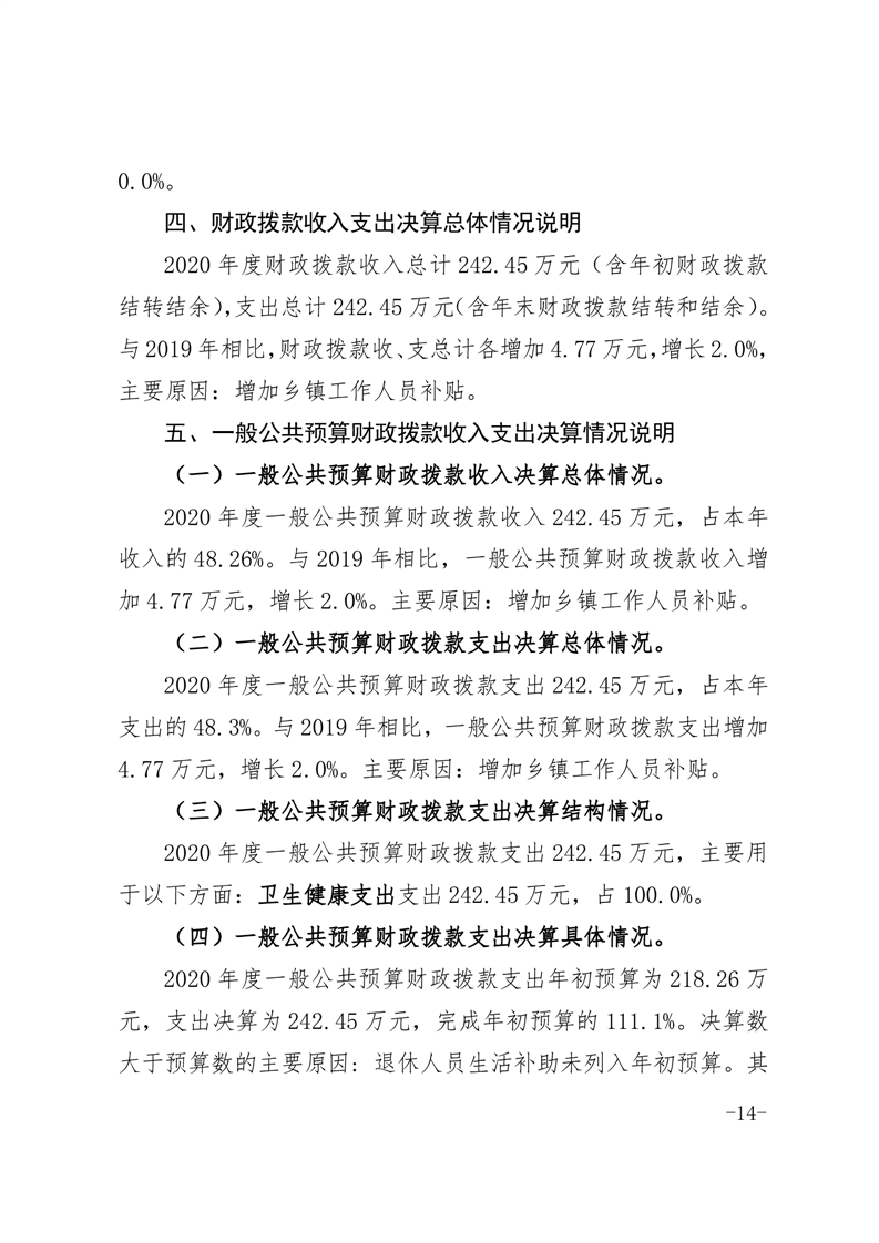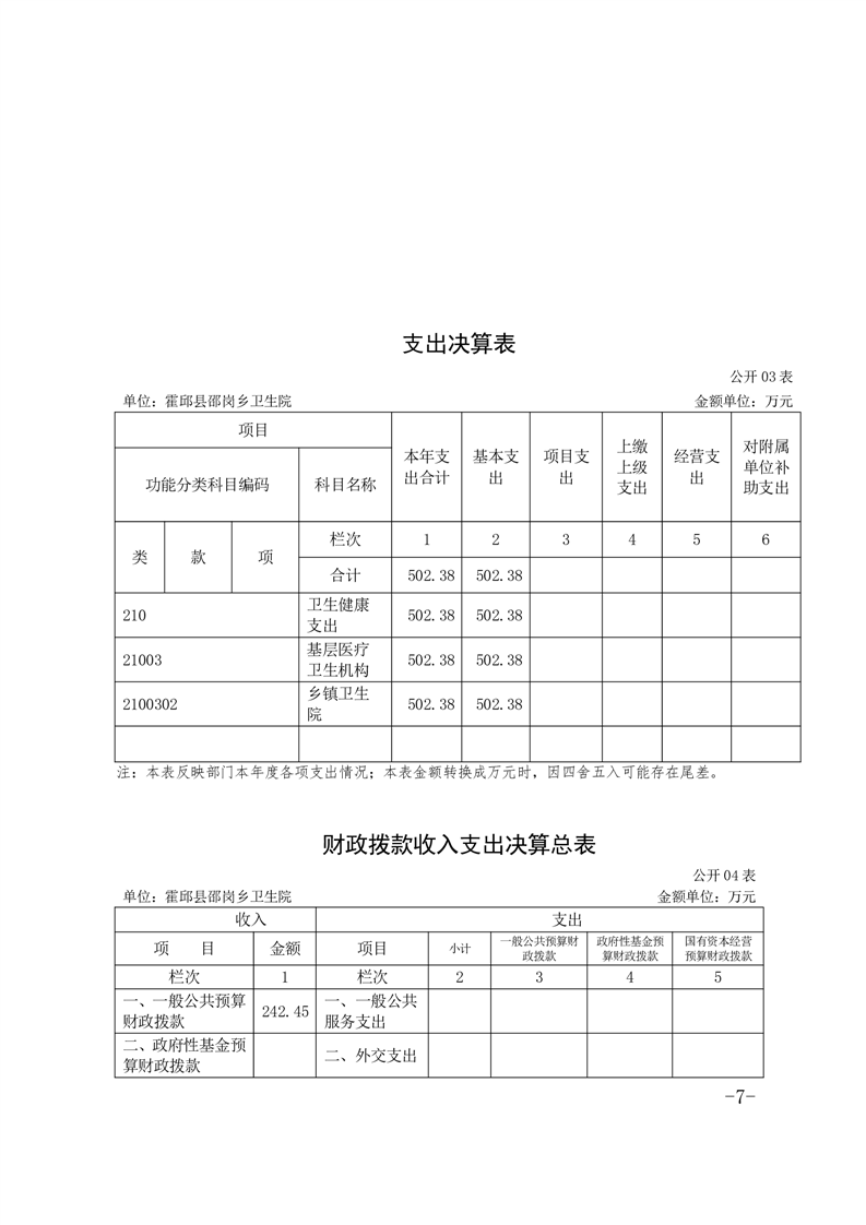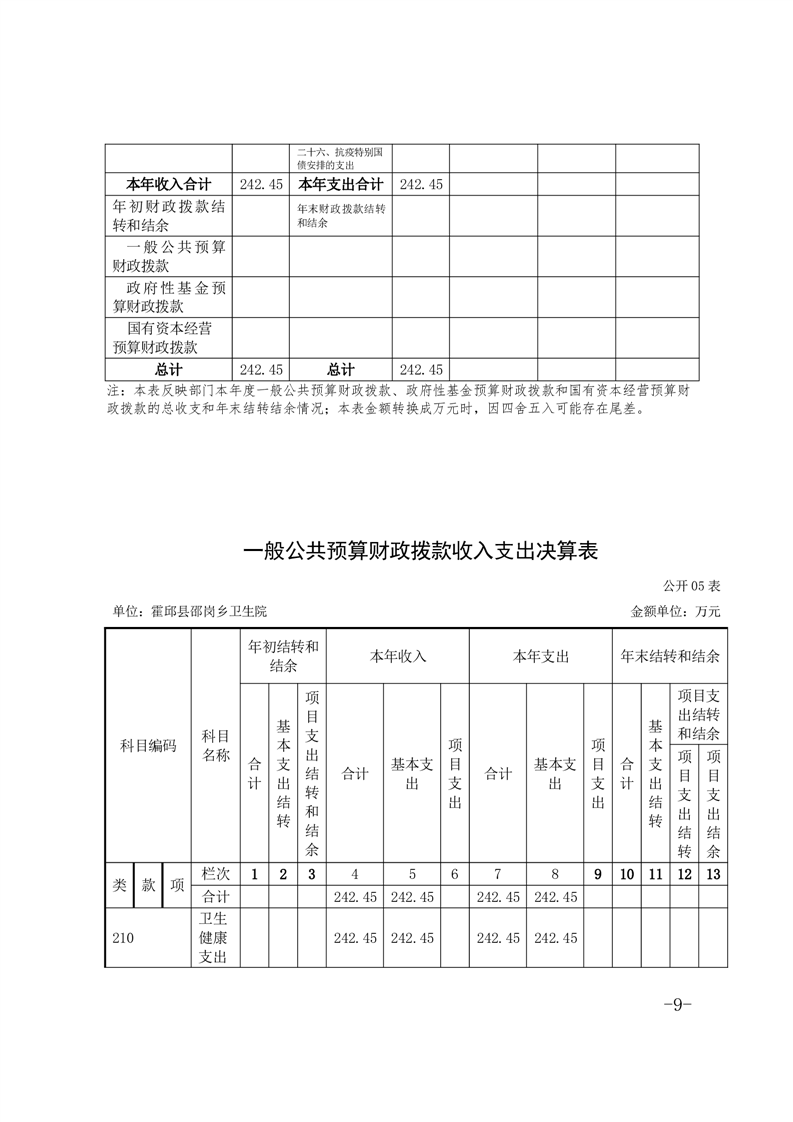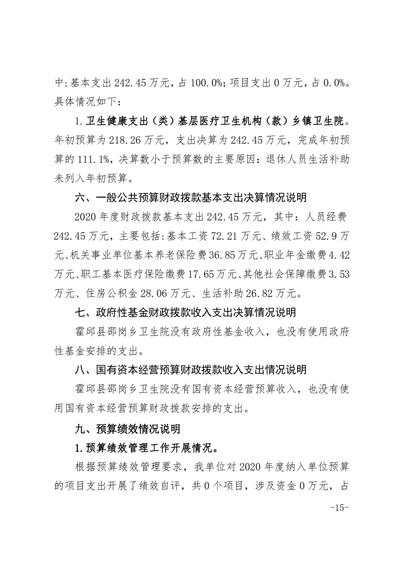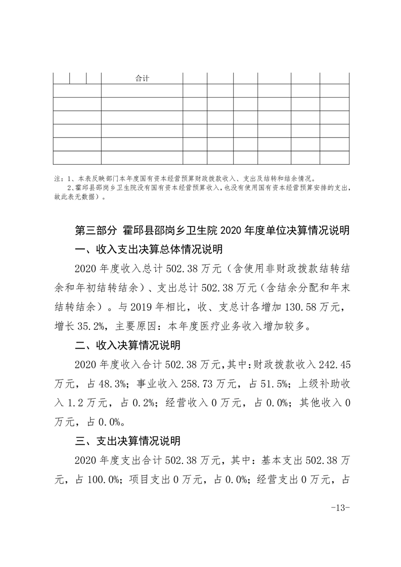 霍邱县邵岗乡卫生院 2020 年度 单位决算公开