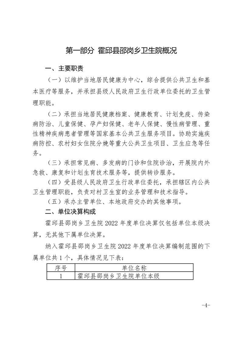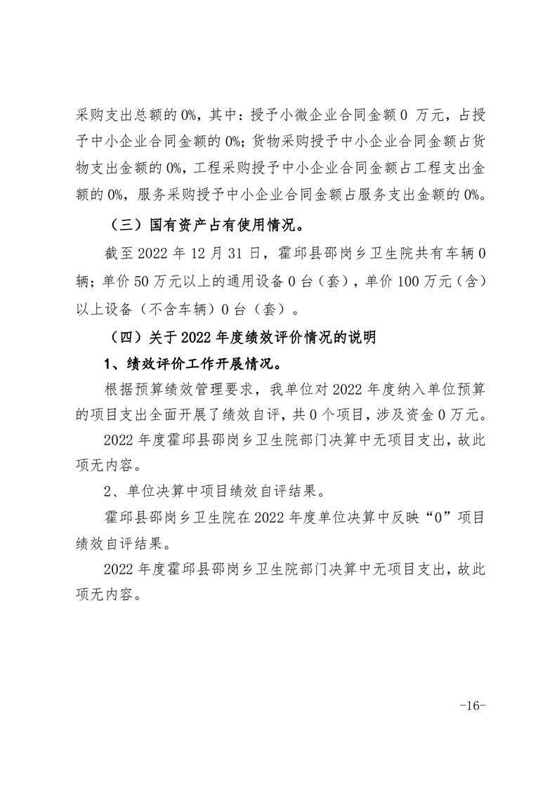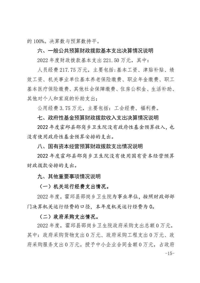 霍邱县邵岗乡卫生院2022年度决算公开