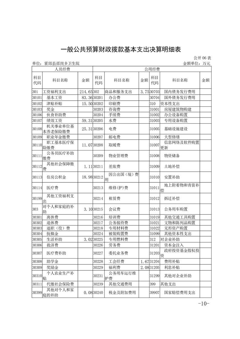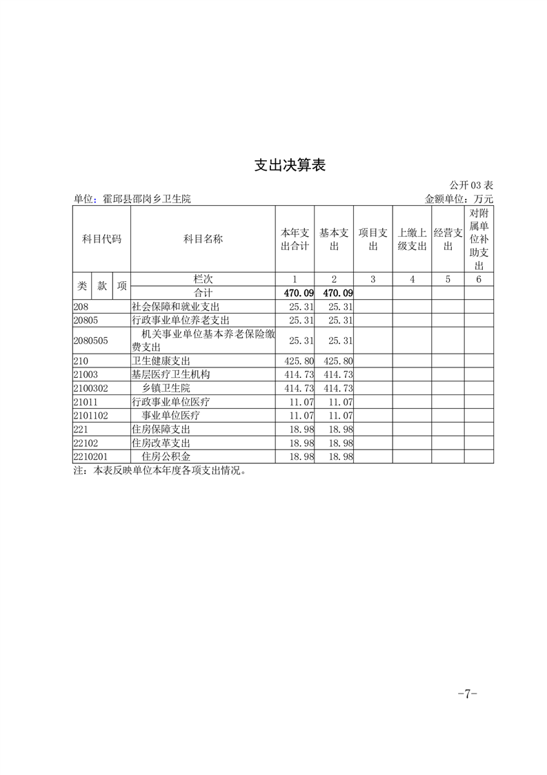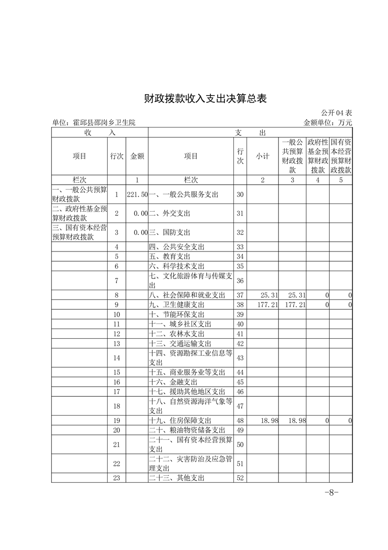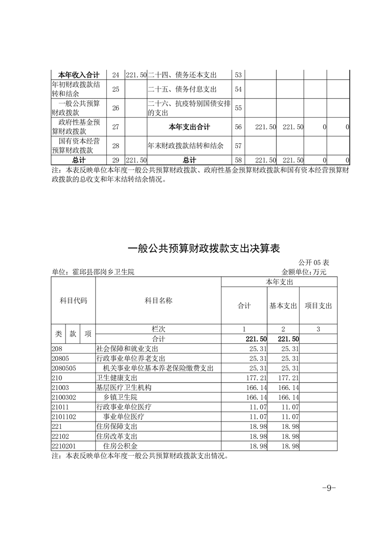 霍邱县邵岗乡卫生院2022年度决算公开
