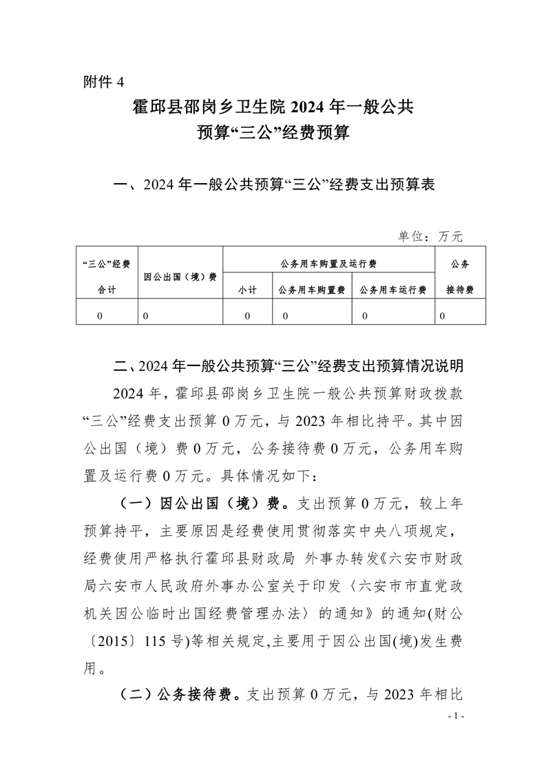 霍邱县邵岗乡卫生院2024年单位一般公共预算安排“三公”经费情况公开