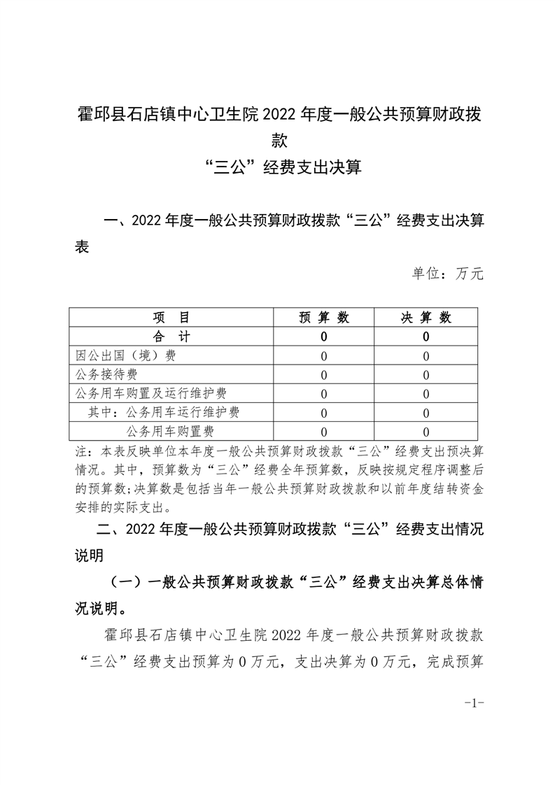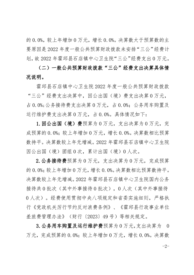 霍邱县石店镇中心卫生院2022年度一般公共预算财政拨款“三公经费”支出决算
