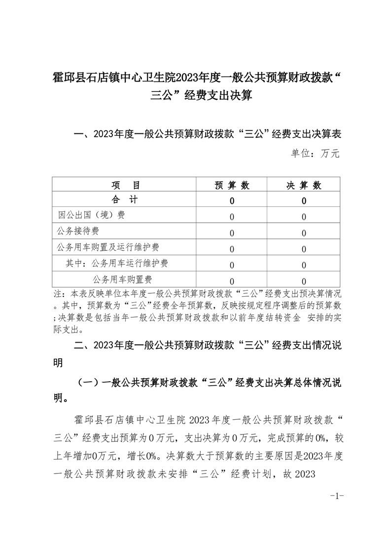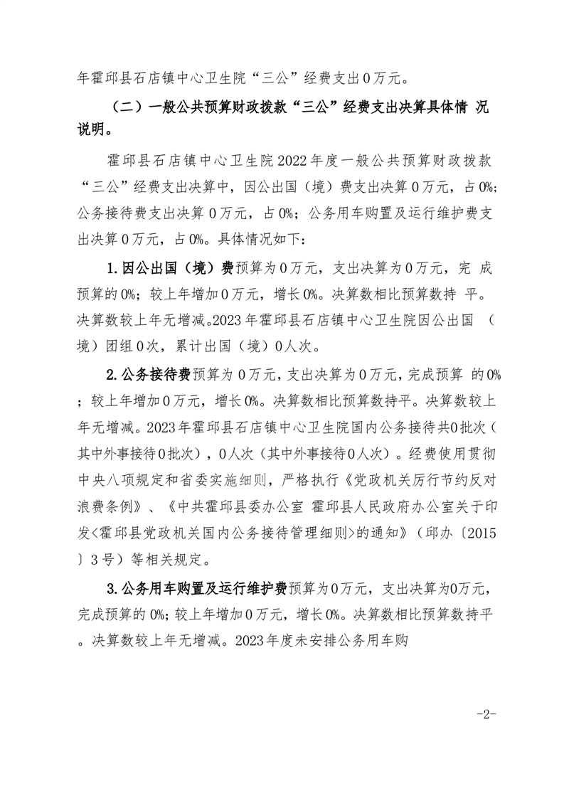 霍邱县石店镇中心卫生院2023年度一般公共预算财政拨款“三公经费”支出决算