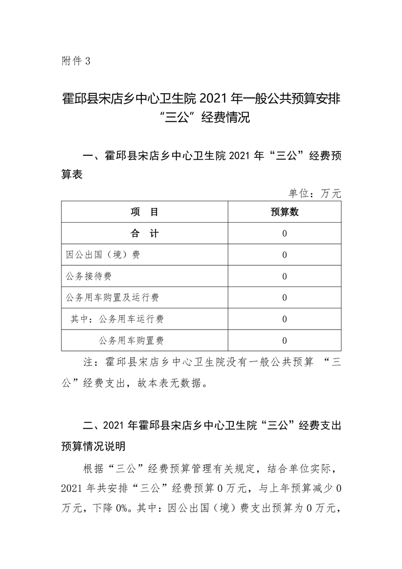 霍邱县宋店乡中心卫生院2021年一般公共预算安排“三公”经费情况