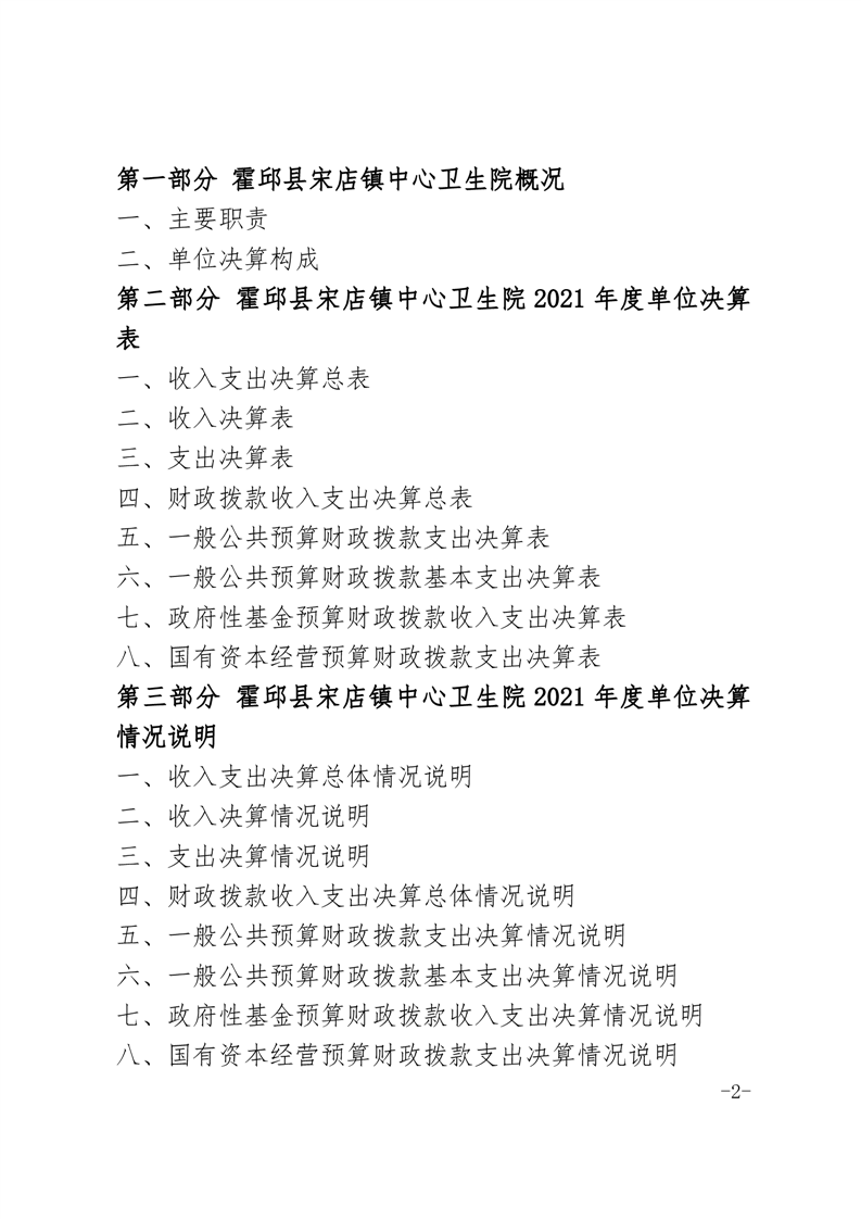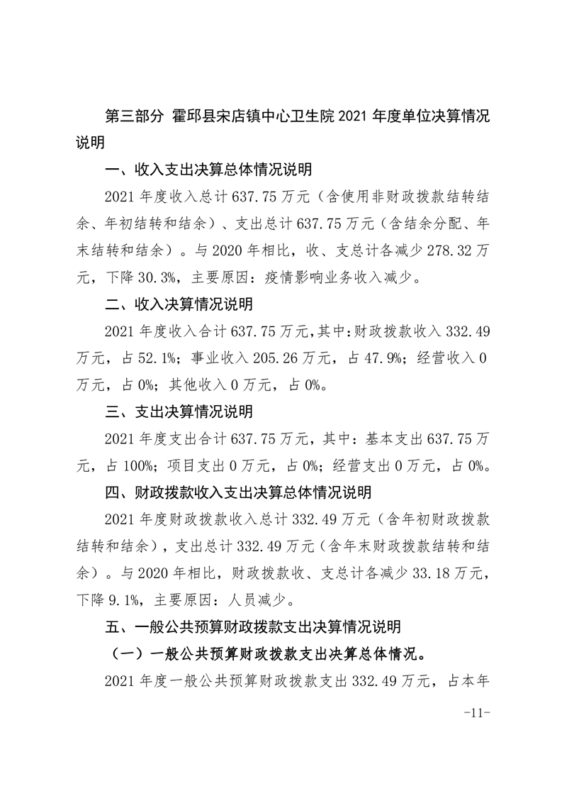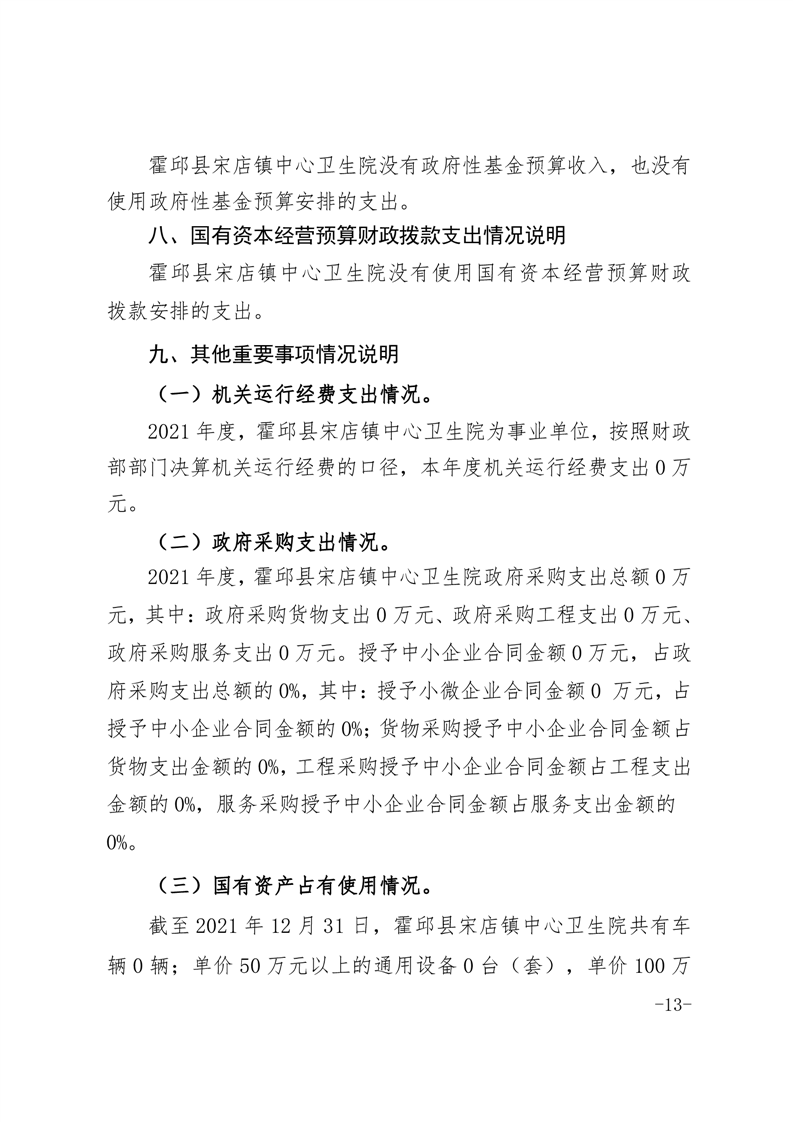 霍邱县宋店镇中心卫生院2021年度单位决算