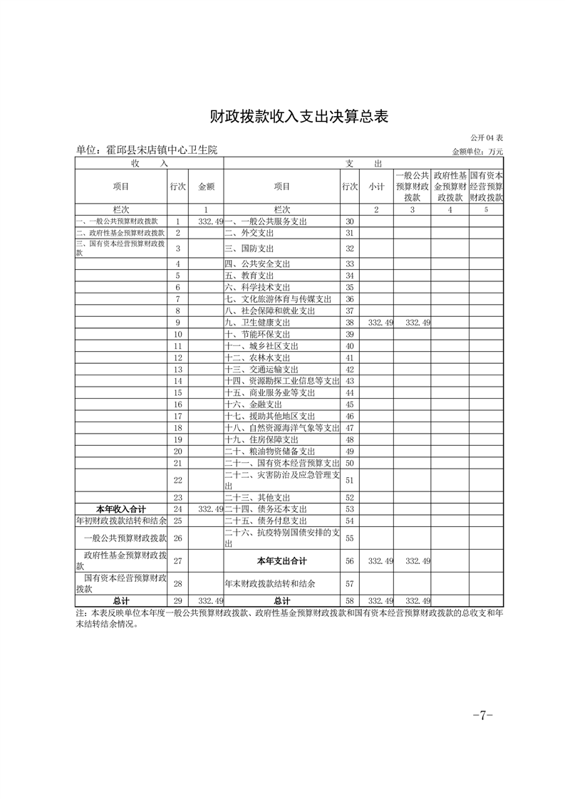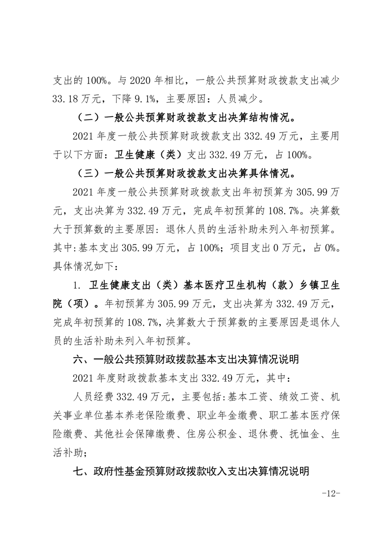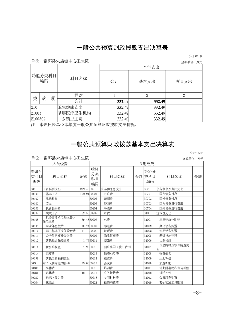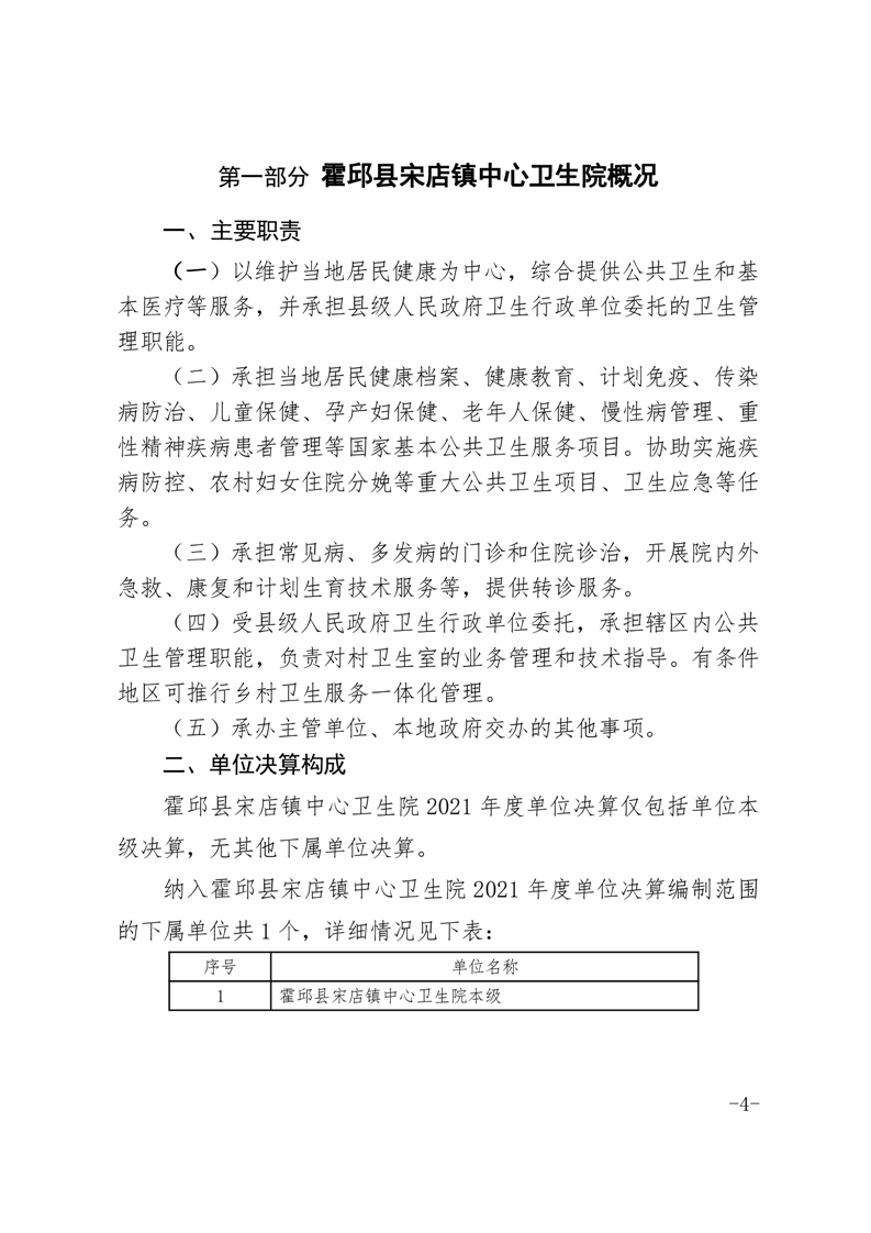 霍邱县宋店镇中心卫生院2021年度单位决算