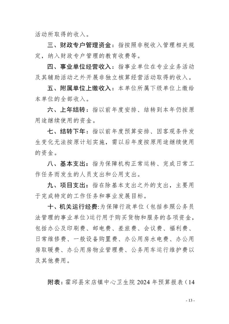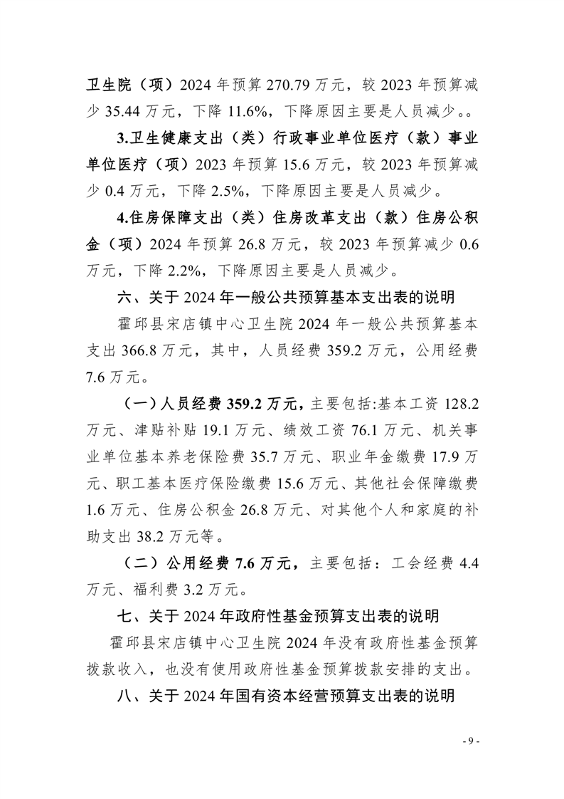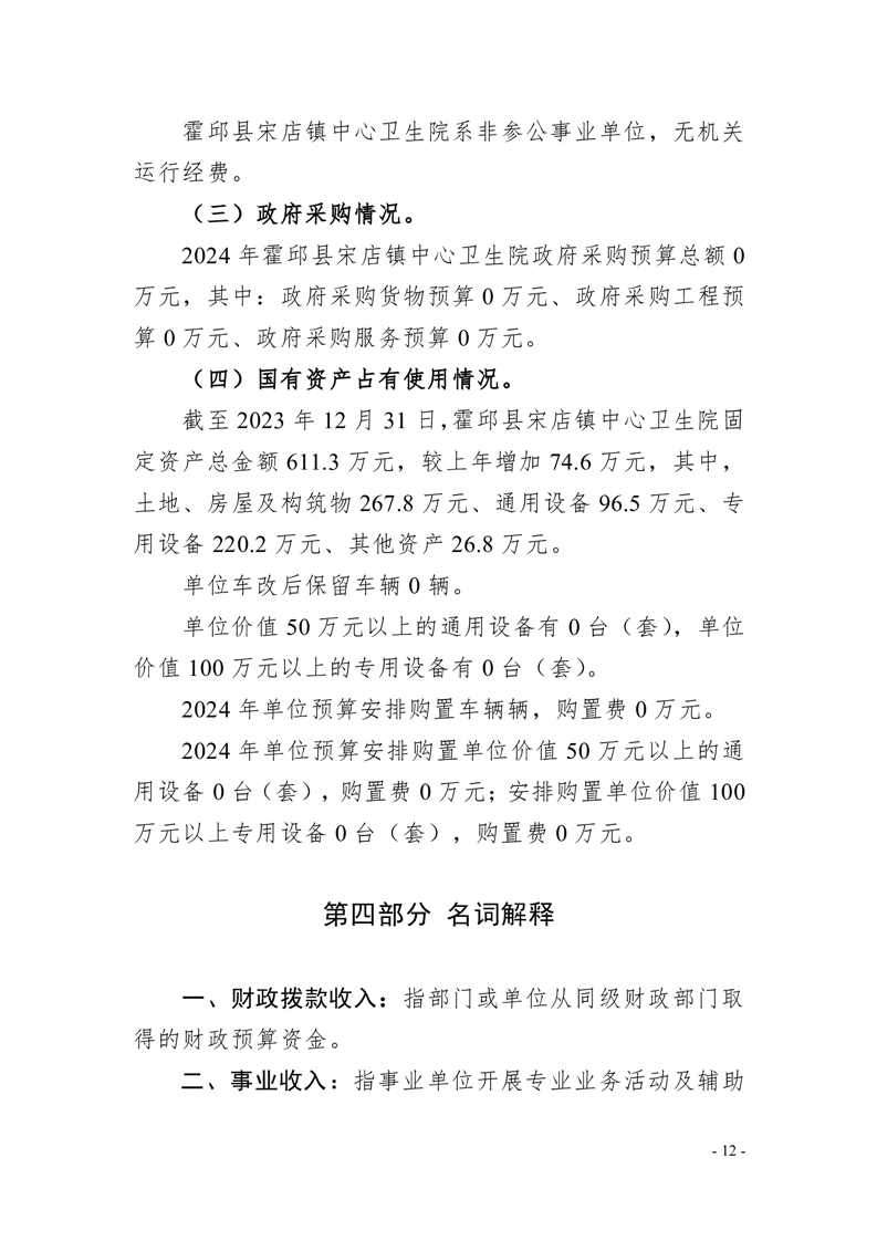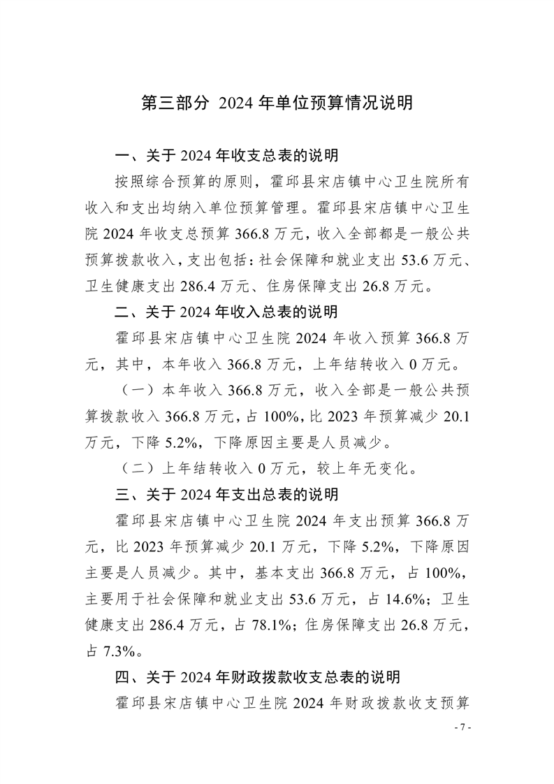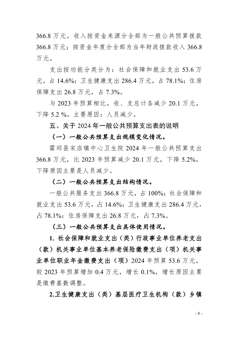 霍邱县宋店镇中心卫生院2024年单位预算公开