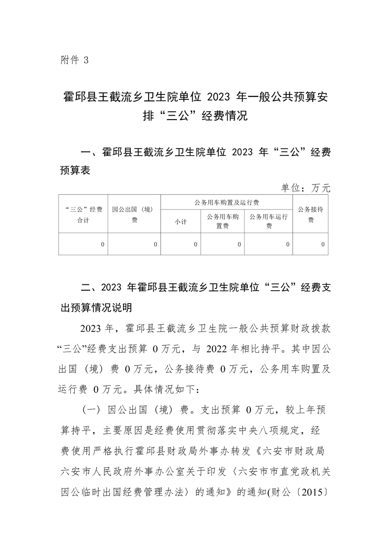 霍邱县王截流乡卫生院2023年一般公共预算安排“三公”经费情况公开
