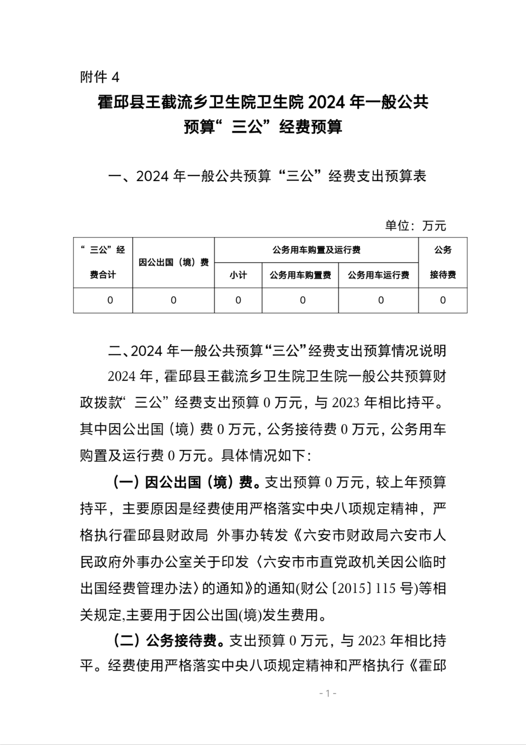 霍邱县王截流乡卫生院2024年一般公共预算安排“三公”经费情况公开