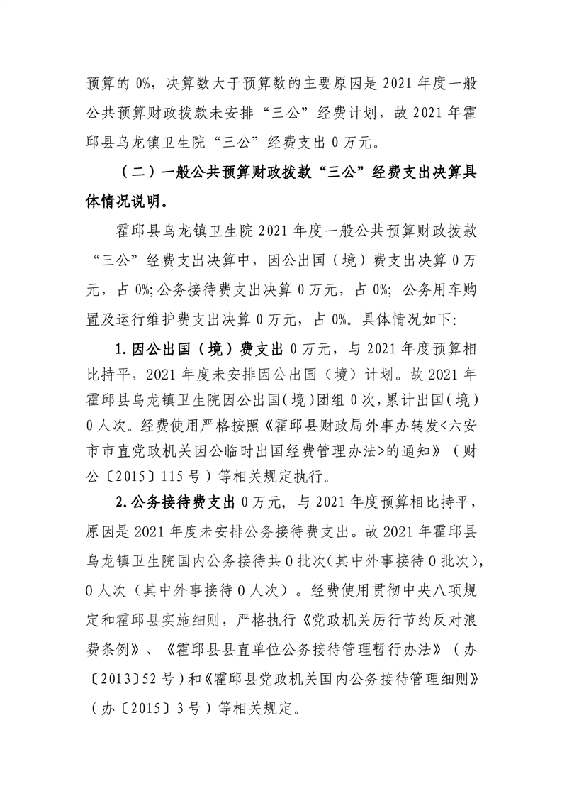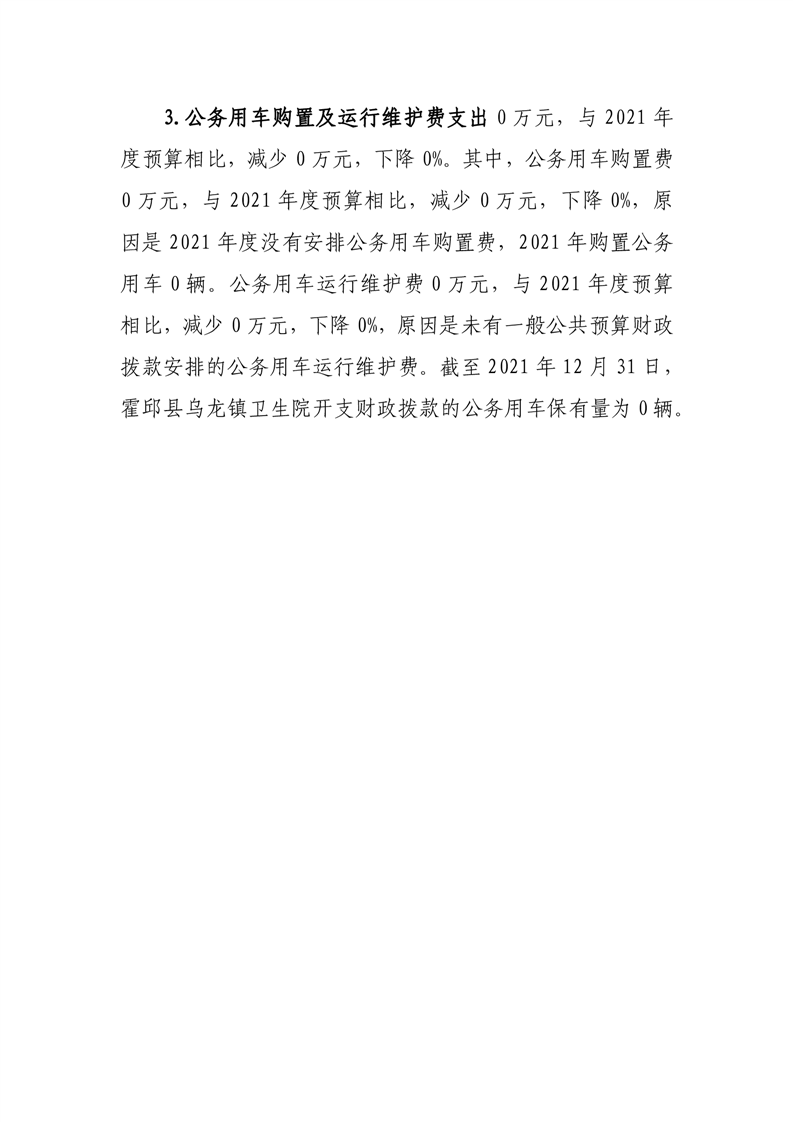 霍邱县乌龙镇卫生院2021年度一般公共预算财政拨款“三公”经费支出决算公开