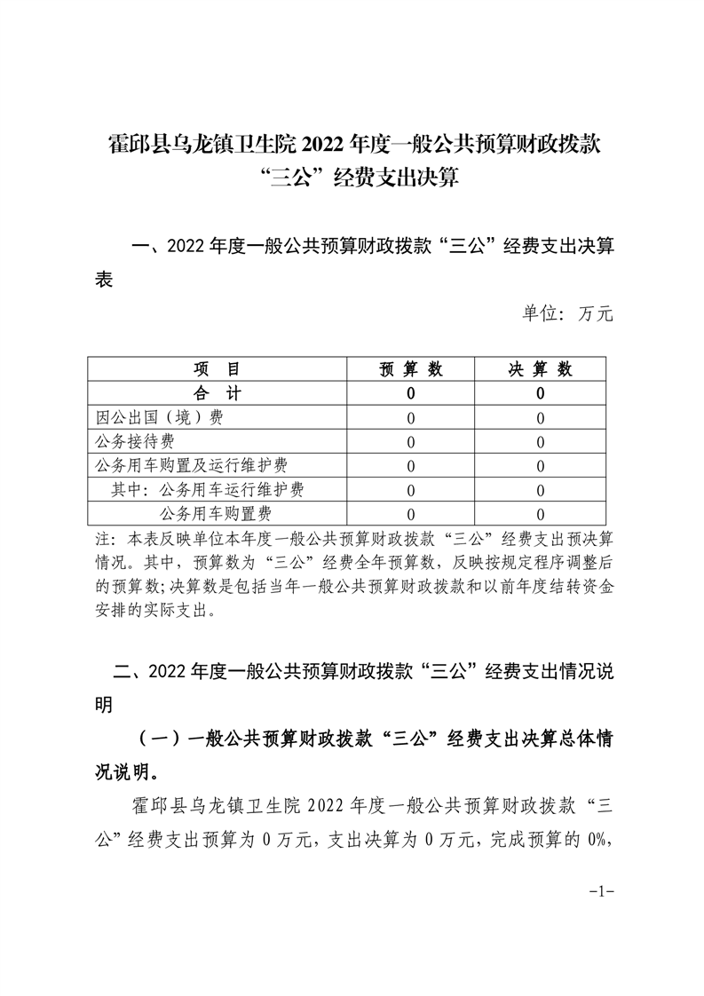霍邱县乌龙镇卫生院2022年度一般公共预算财政拨款“三公经费”支出决算