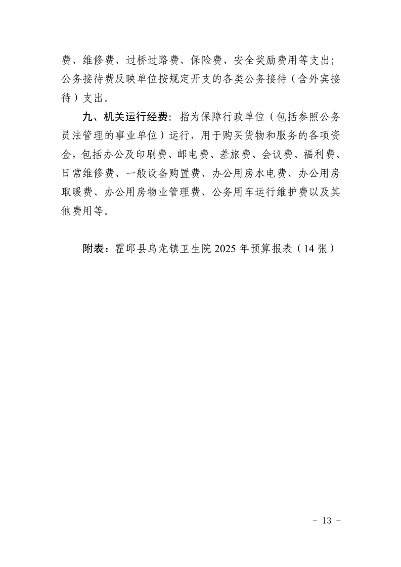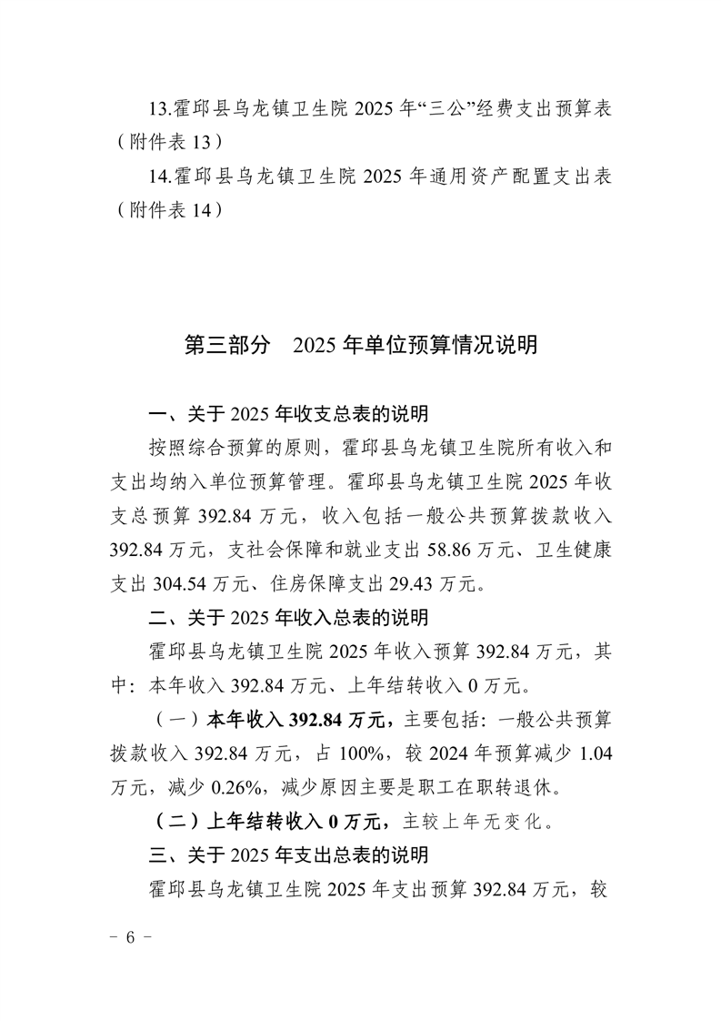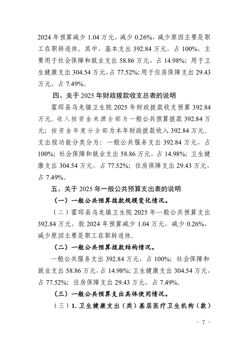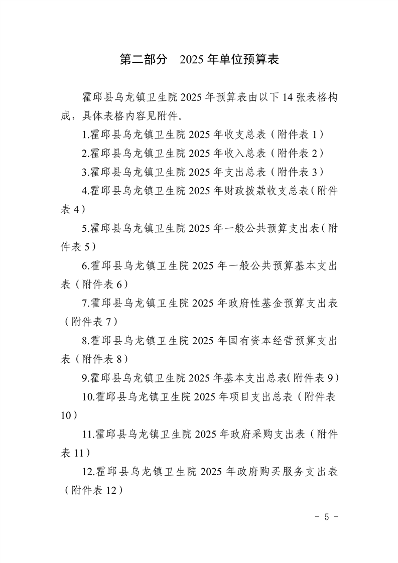 霍邱县乌龙镇卫生院2025年部门单位预算公开