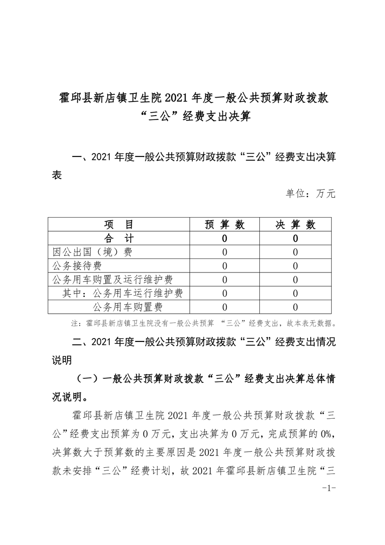 霍邱县新店镇2021年度一般公共预算财政拨款“三公”经费决算公开