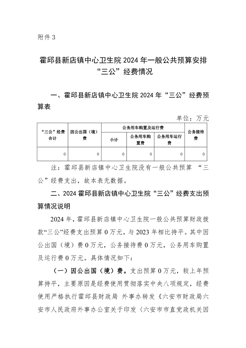 霍邱县新店镇卫生院2024年单位一般公共预算安排“三公”经费情况公开