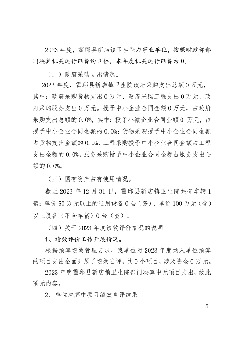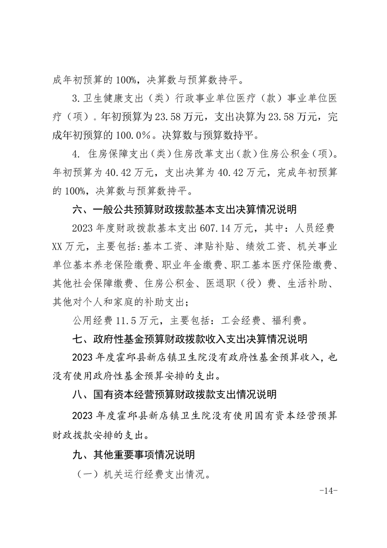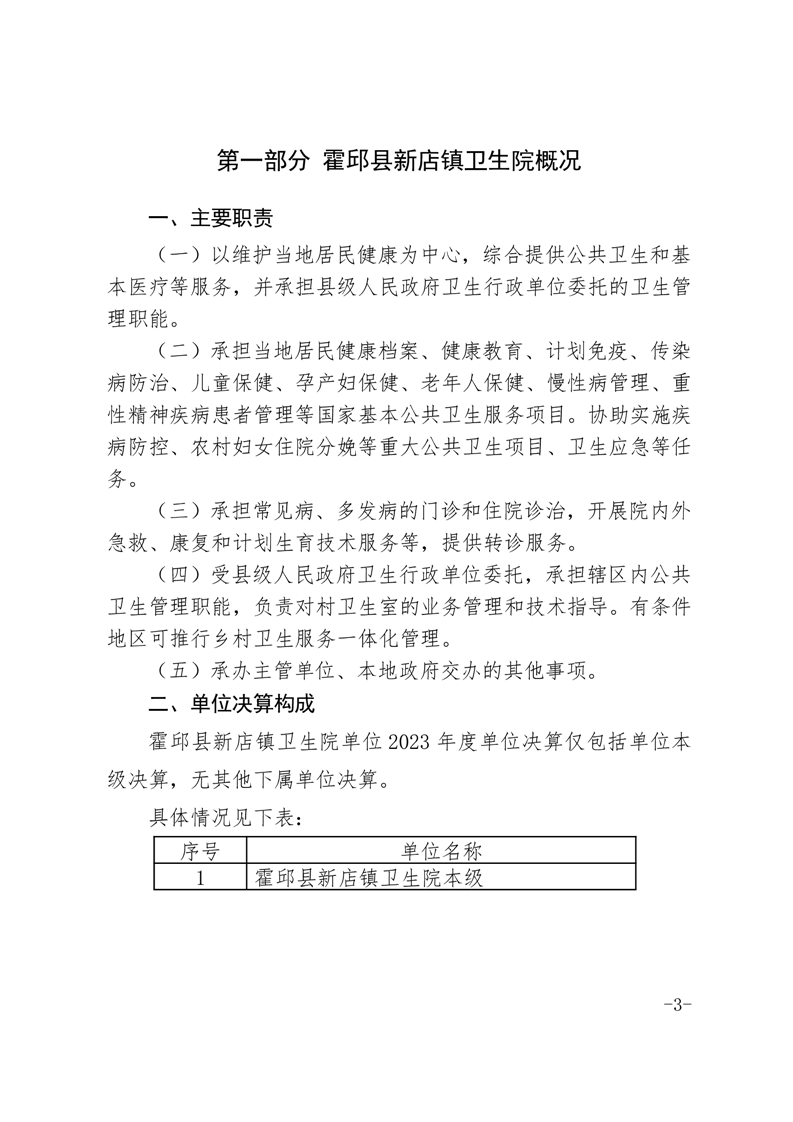 霍邱县新店镇卫生院2023年度决算公开