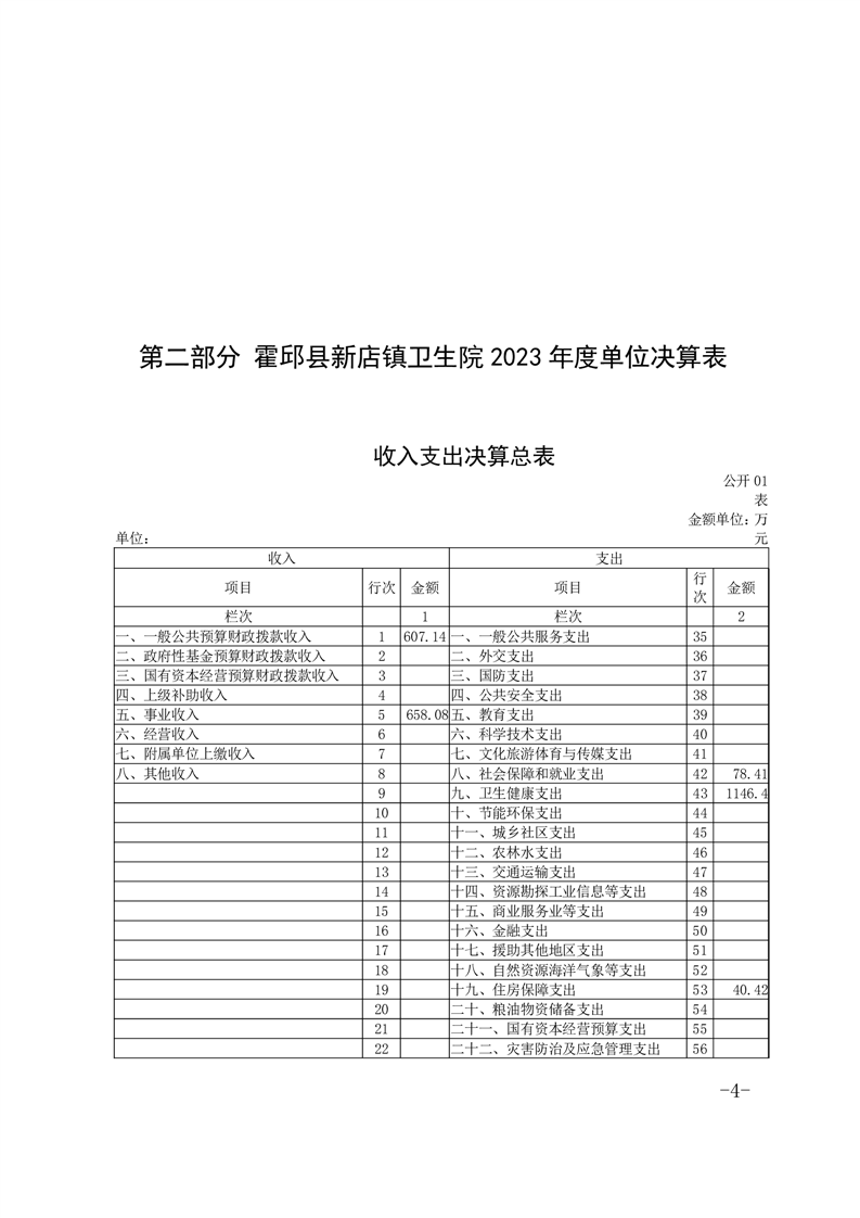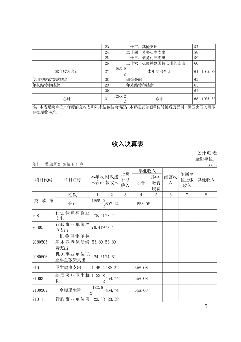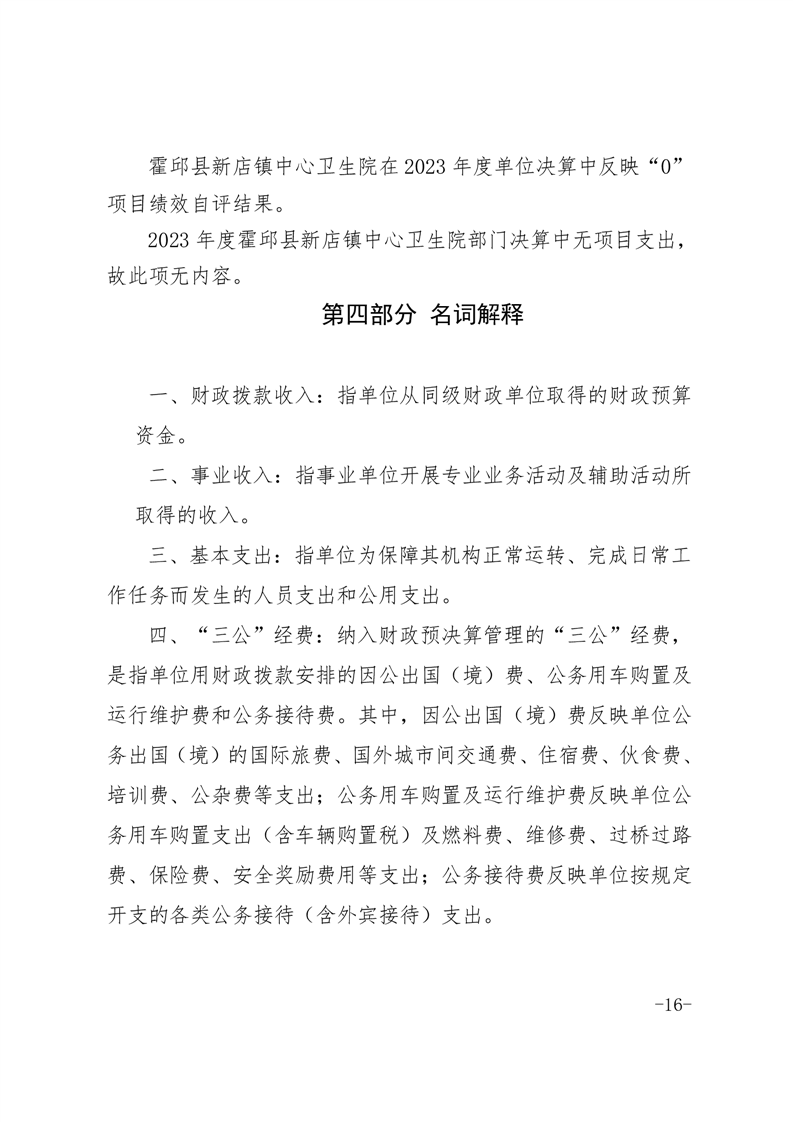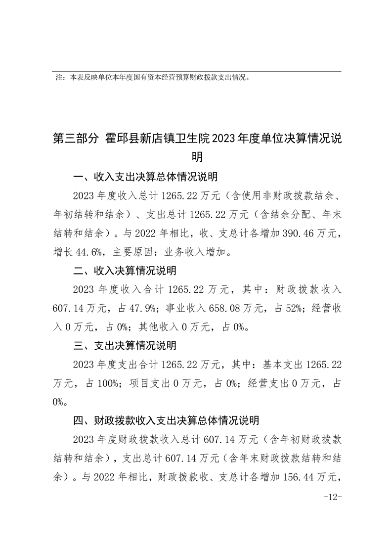 霍邱县新店镇卫生院2023年度决算公开
