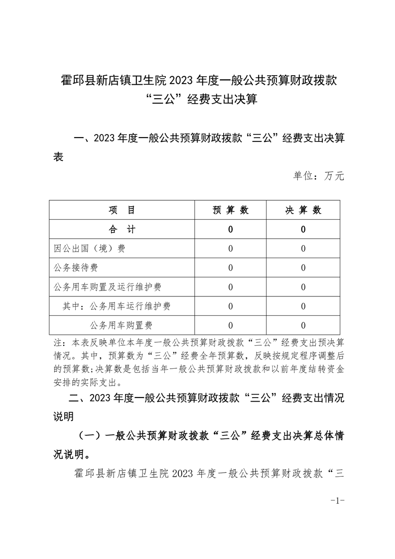霍邱县新店镇卫生院2023年度一般公共预算财政拨款“三公经费”支出决算