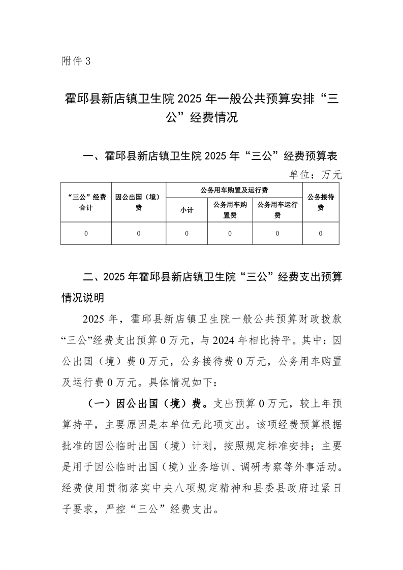 霍邱县新店镇卫生院2025年部门单位一般公共预算安排“三公”经费情况公开