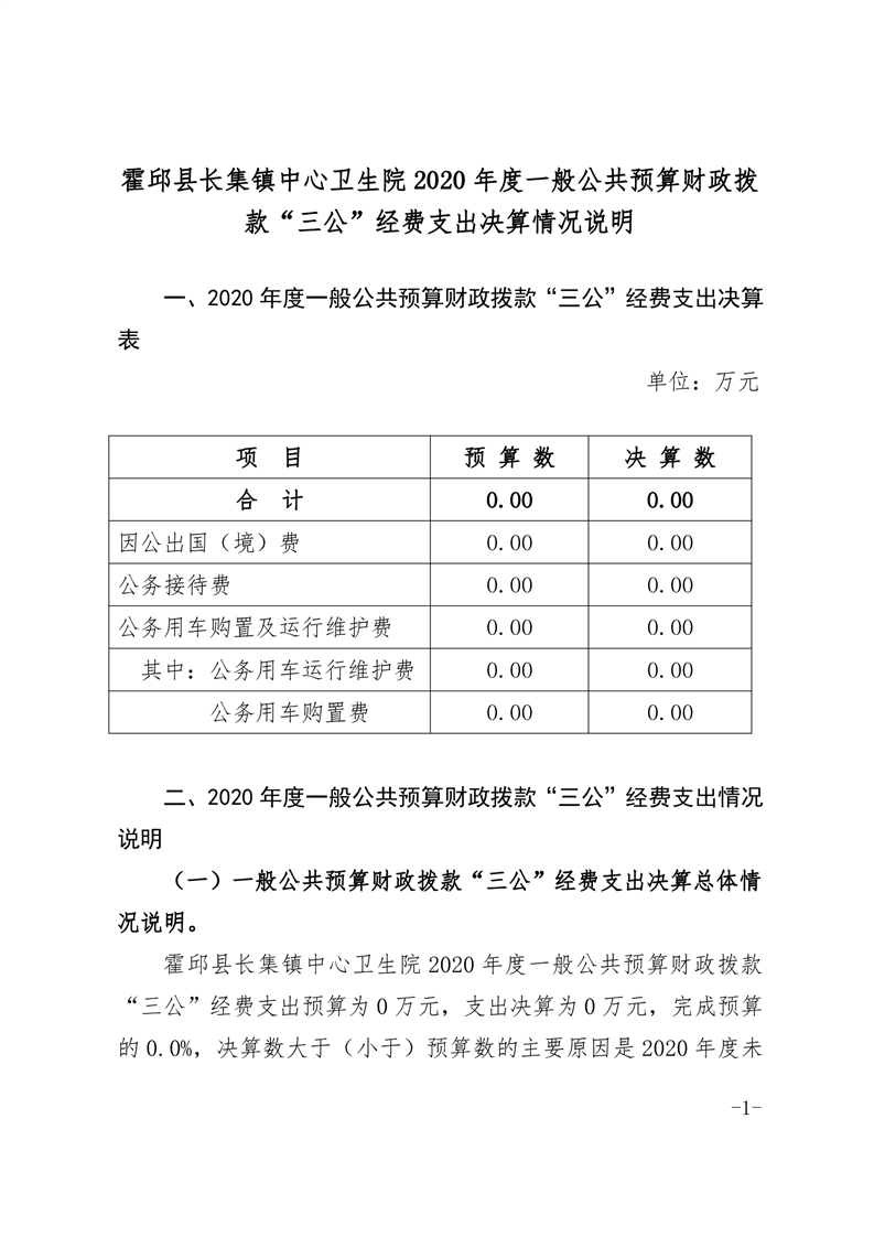 霍邱县长集镇中心卫生院2020年决算“三公经费”公开