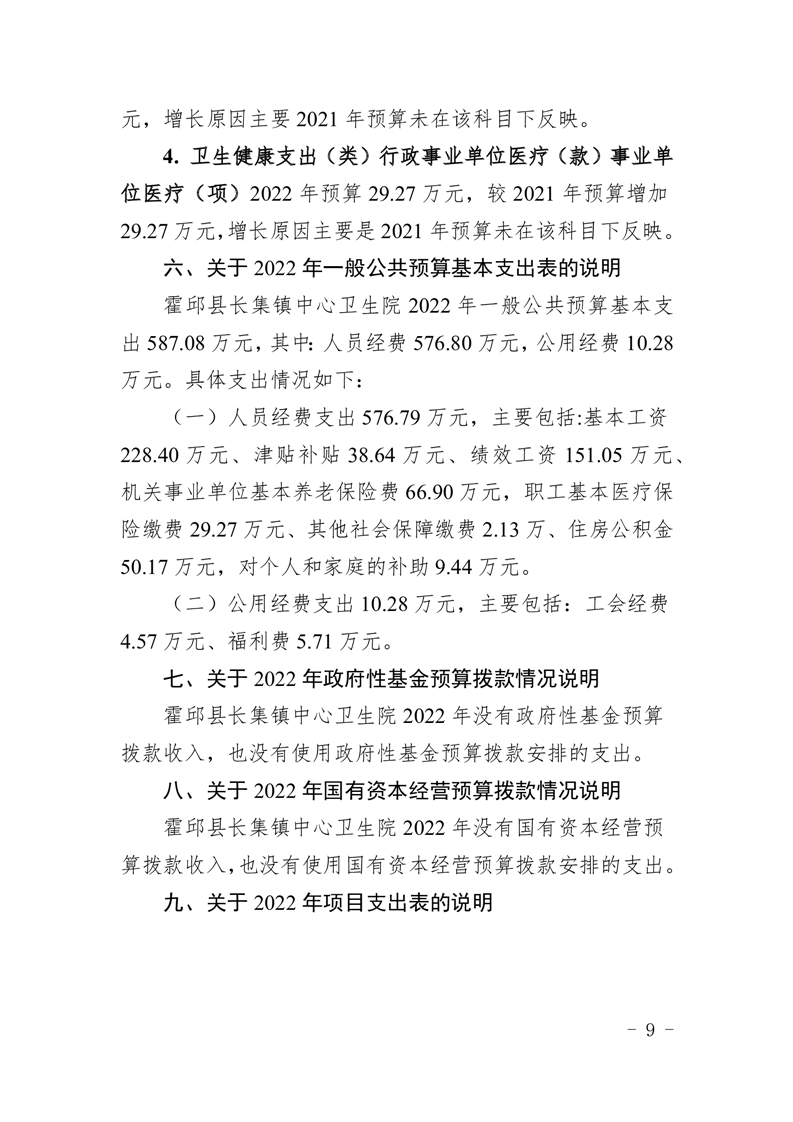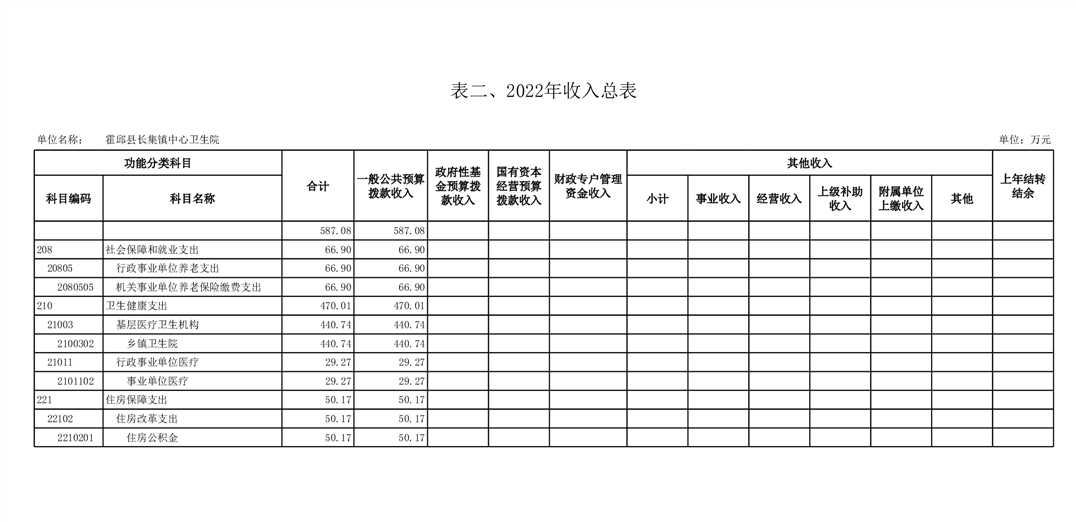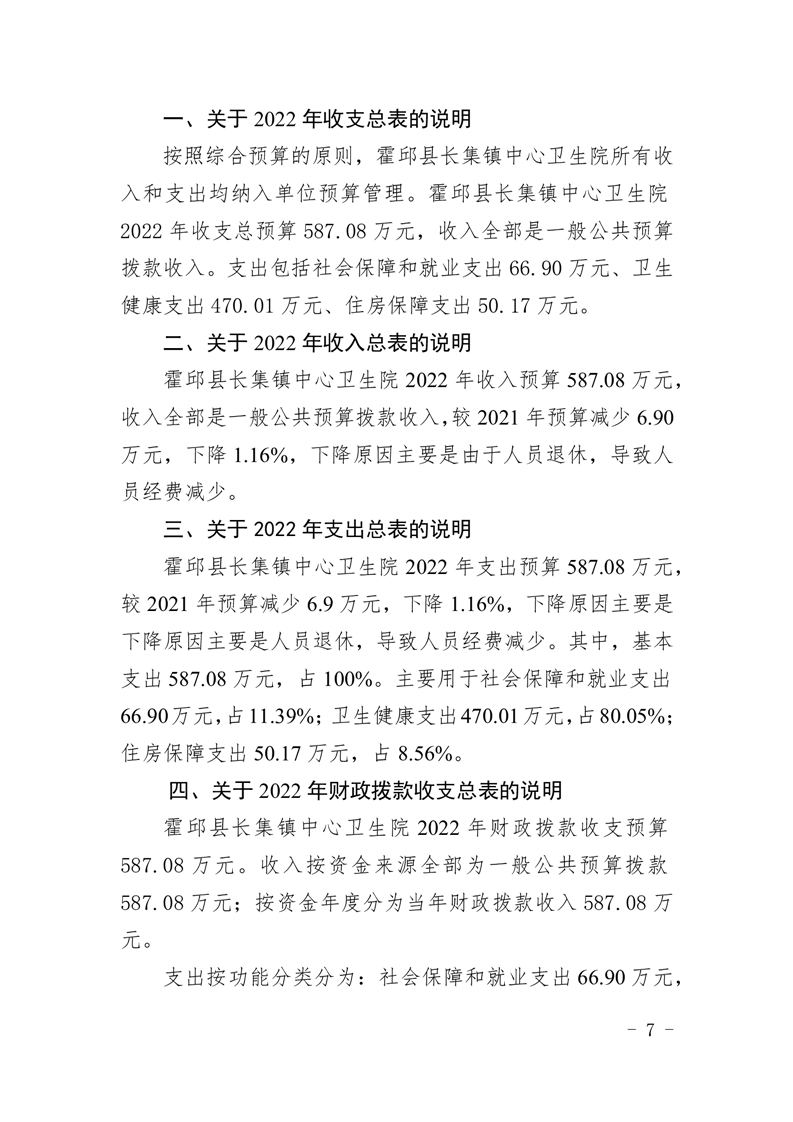 霍邱县长集镇中心卫生院2022年单位预算公开