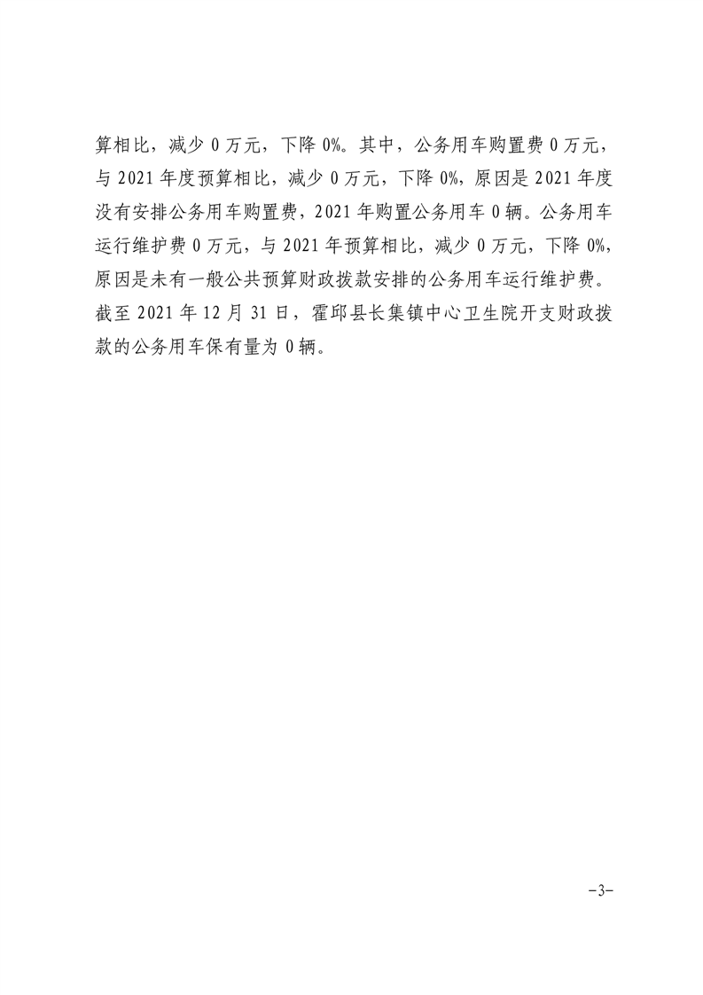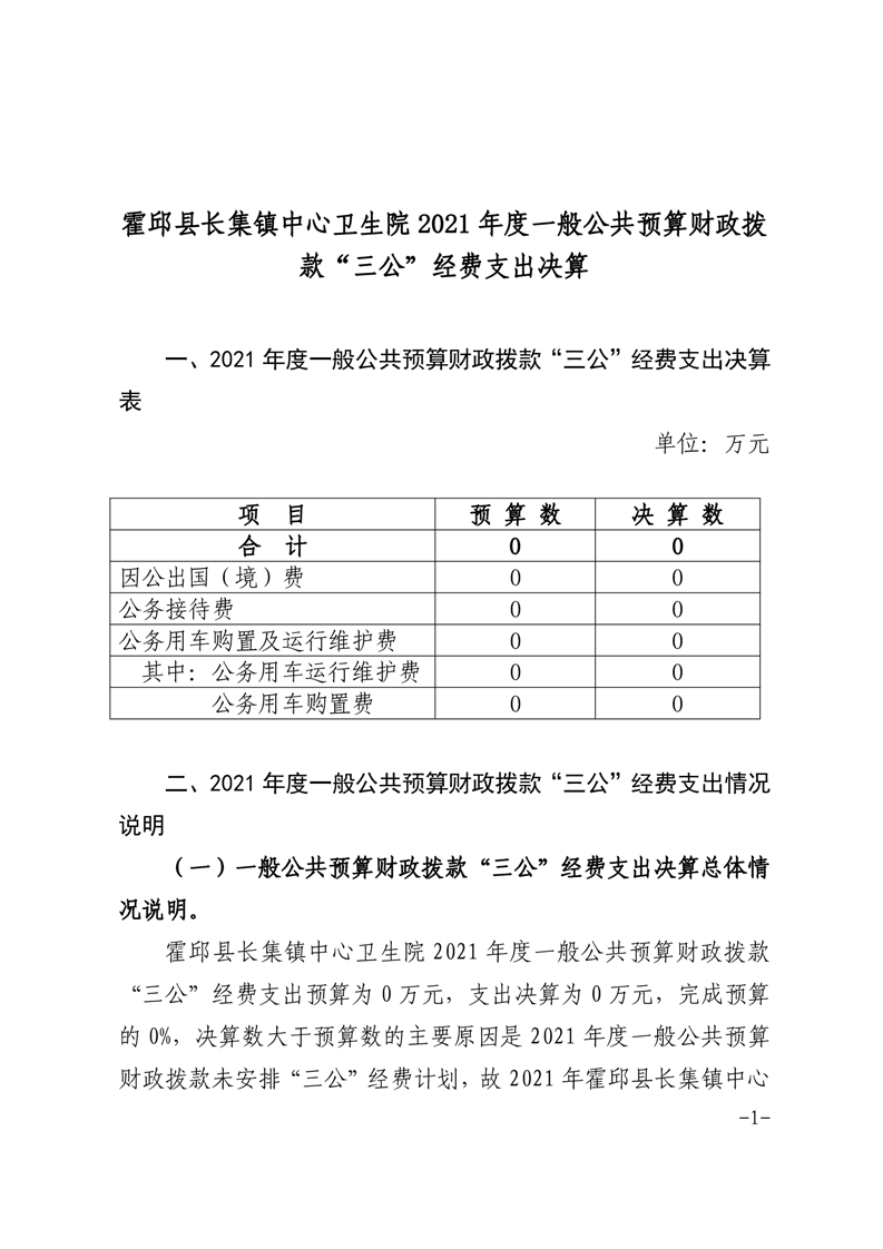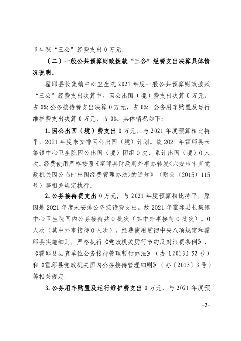 霍邱县长集镇卫生院2021年度决算“三公”经费公开