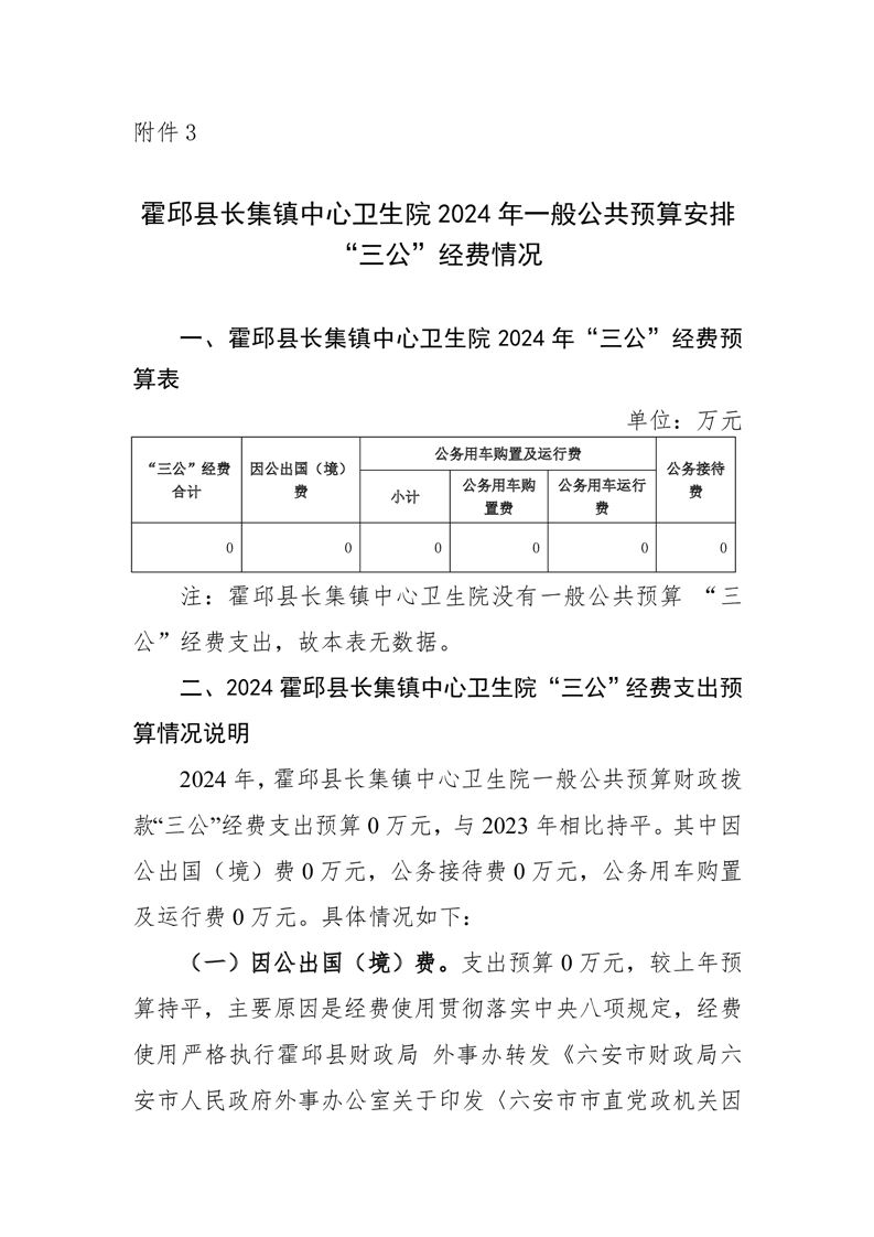 霍邱县长集镇中心卫生院2024年单位一般公共预算安排“三公”经费情况公开