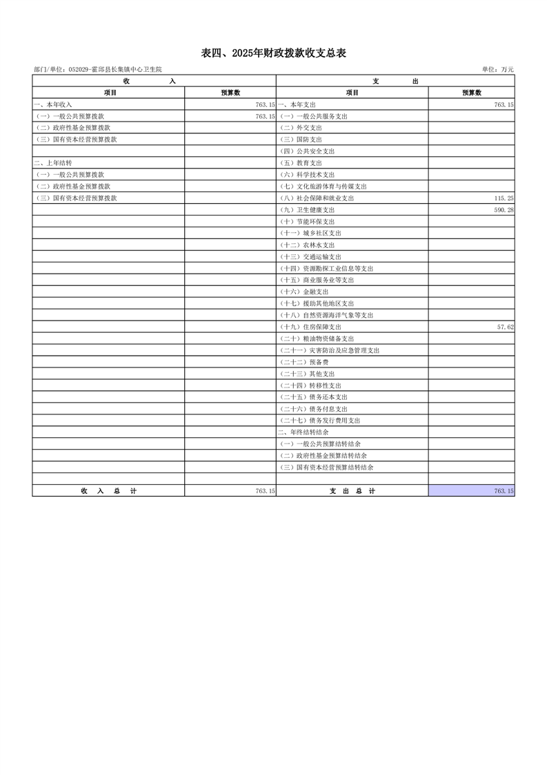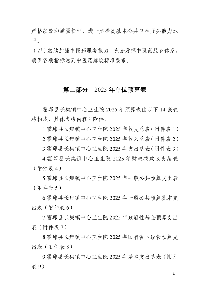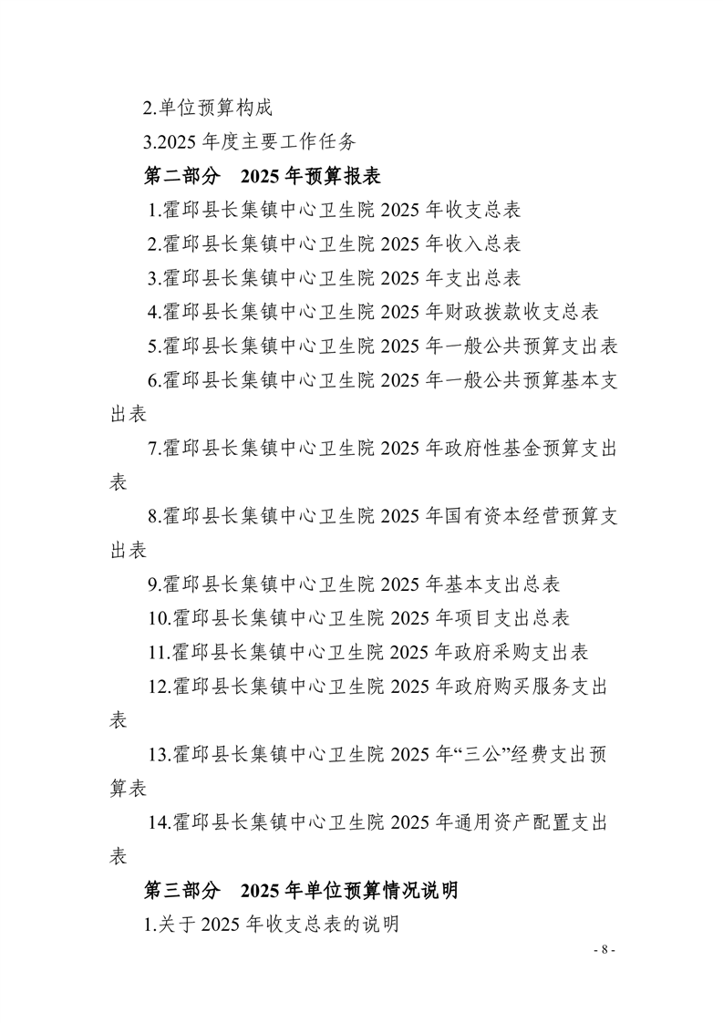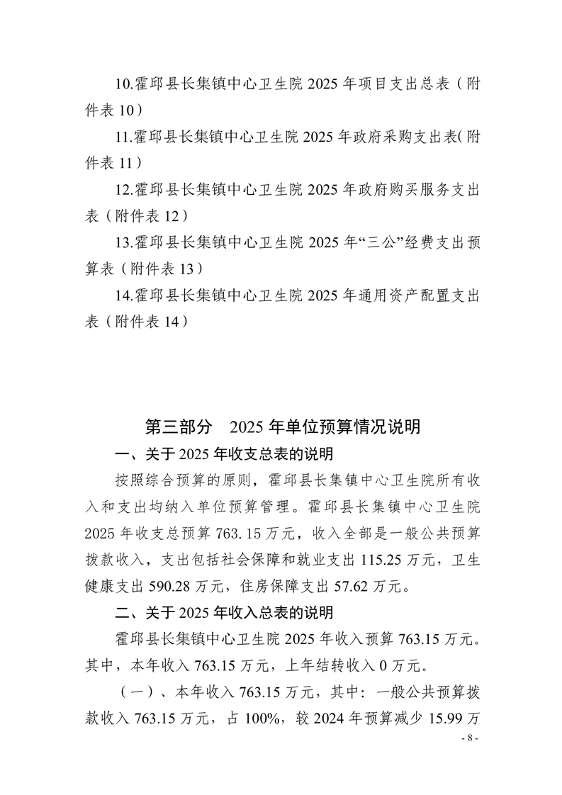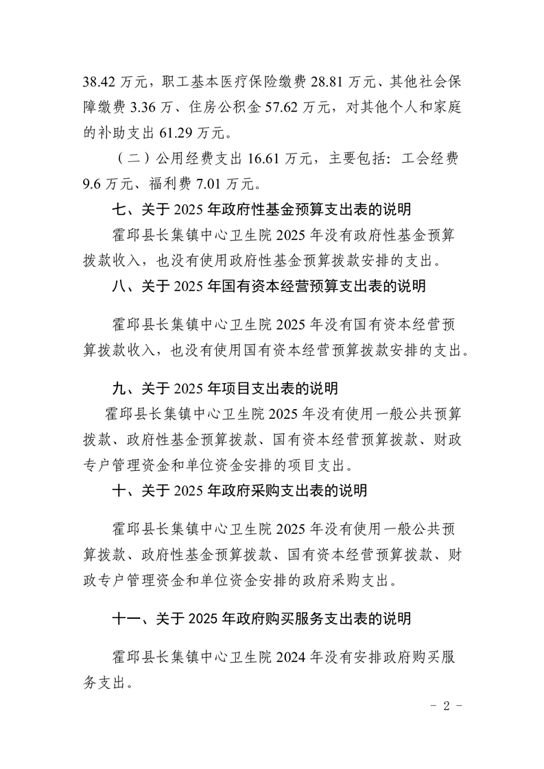 霍邱县长集镇卫生院2025年部门单位预算公开