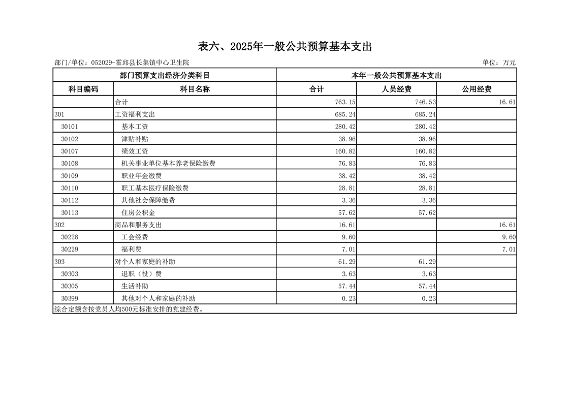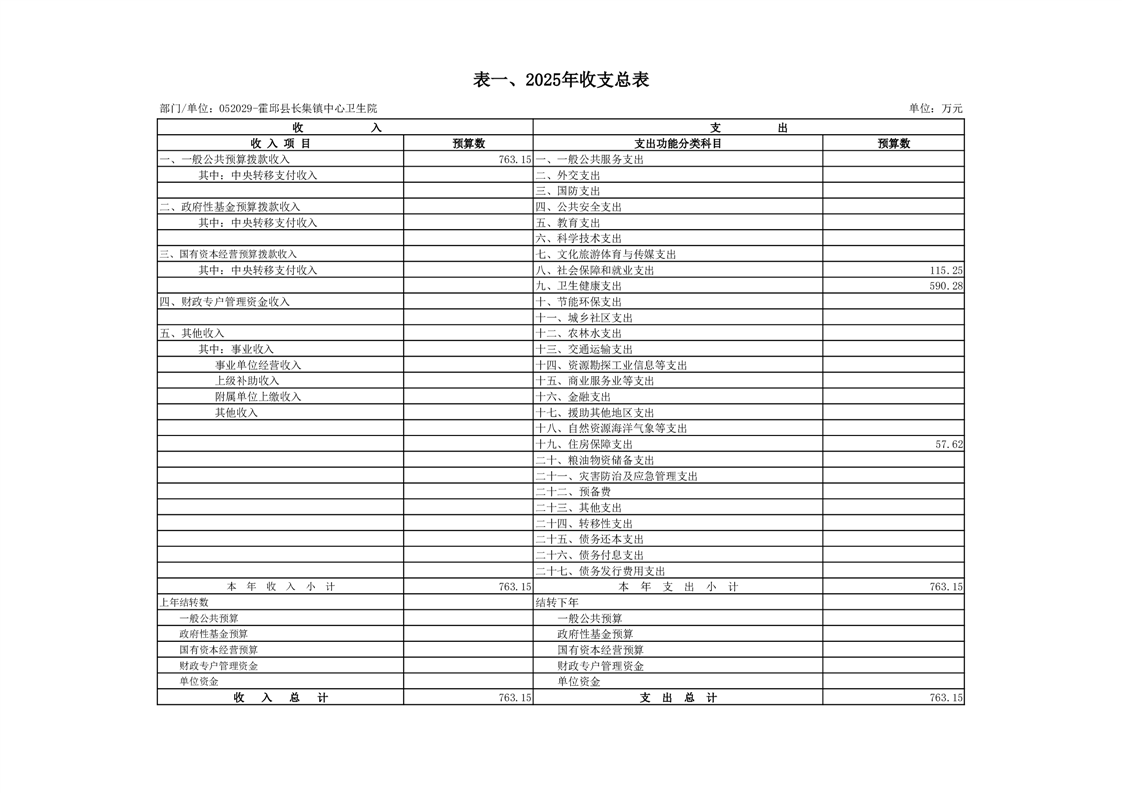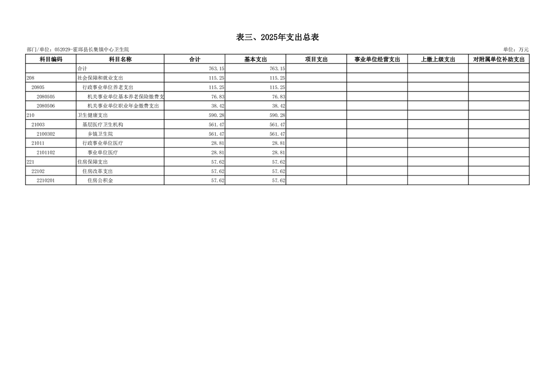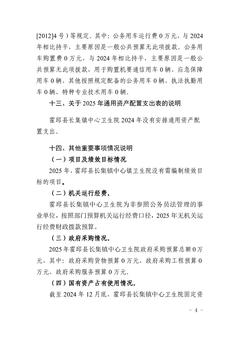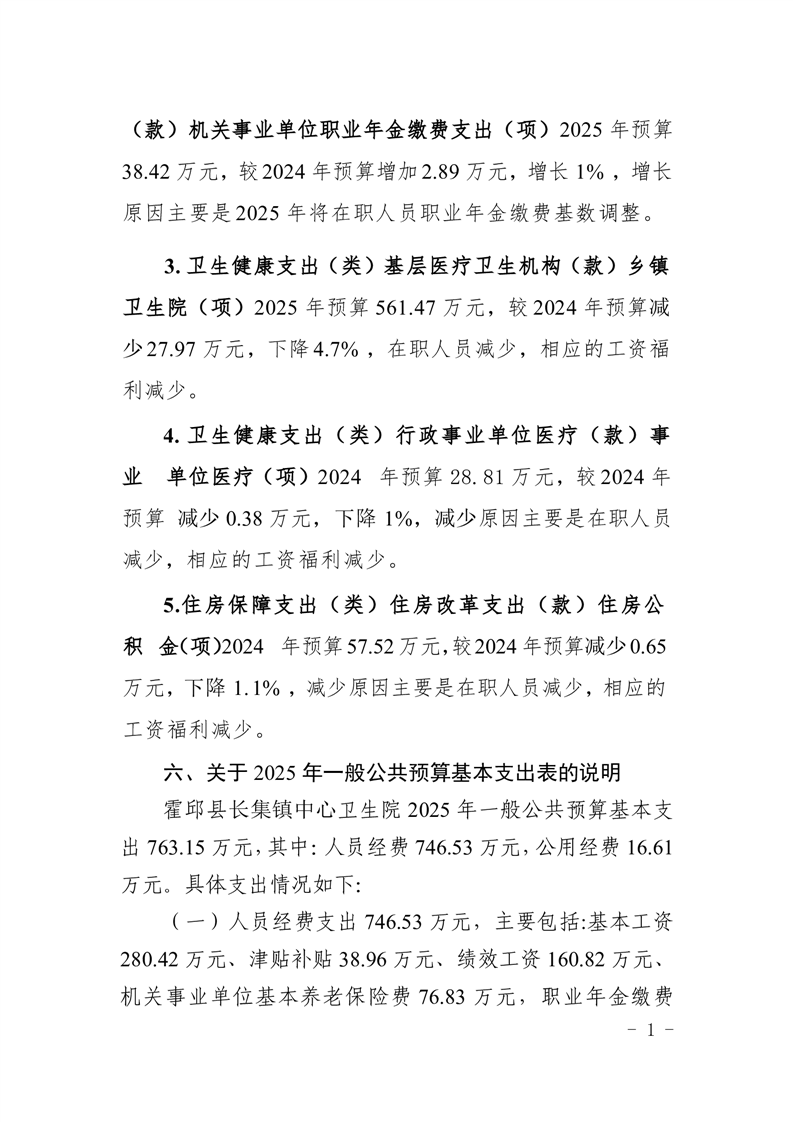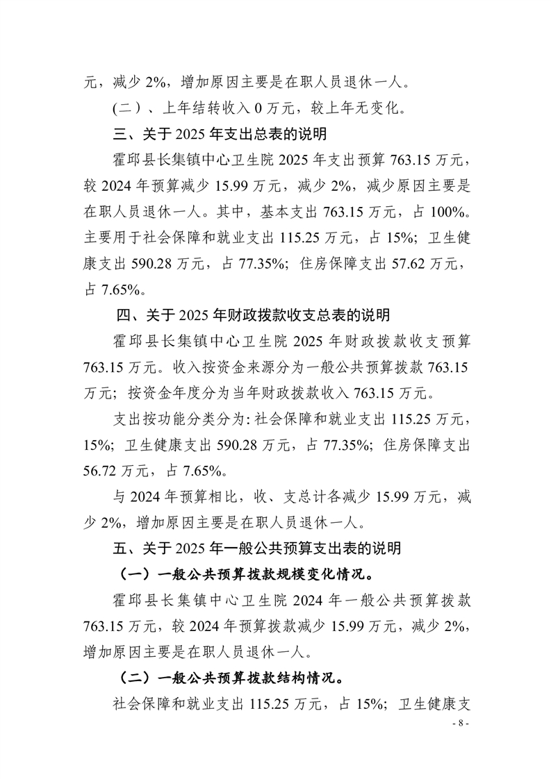 霍邱县长集镇卫生院2025年部门单位预算公开