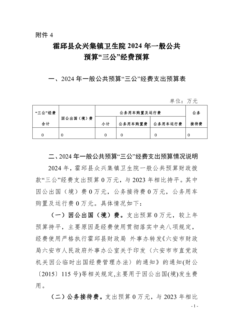霍邱县众兴集镇卫生院2024年单位一般公共预算安排“三公”经费情况公开