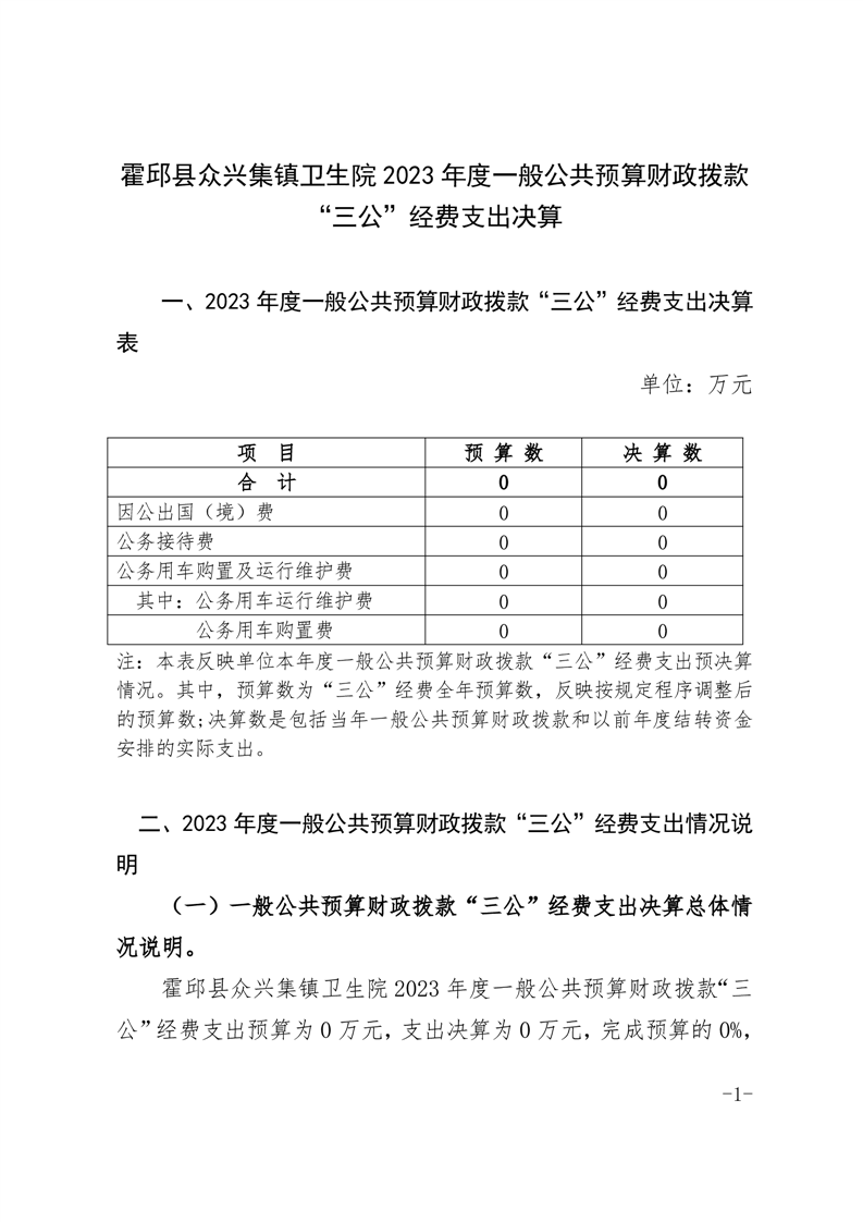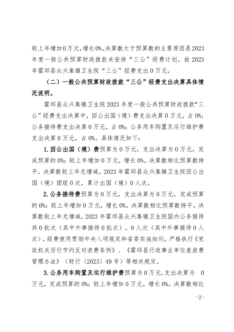 霍邱县众兴集镇卫生院2023年度一般公共预算财政拨款“三公经费”支出决算
