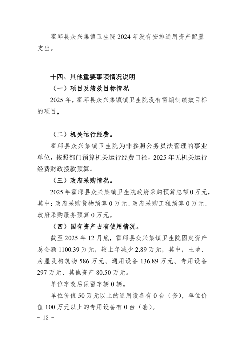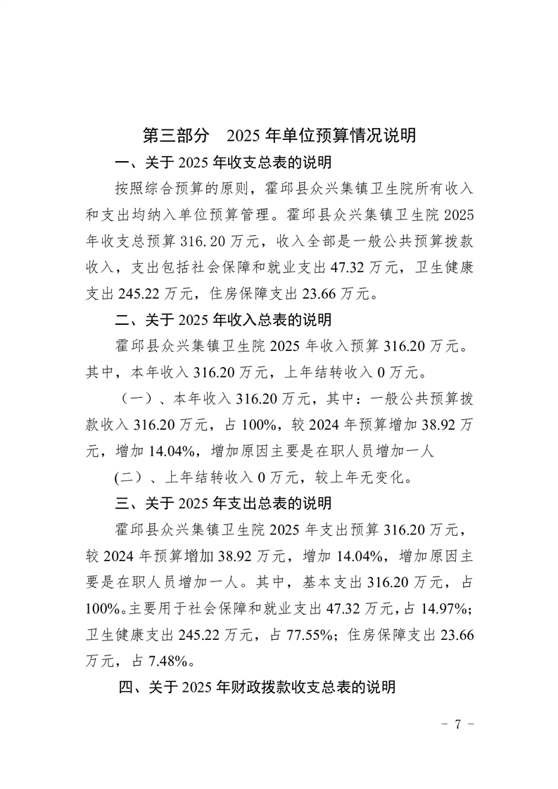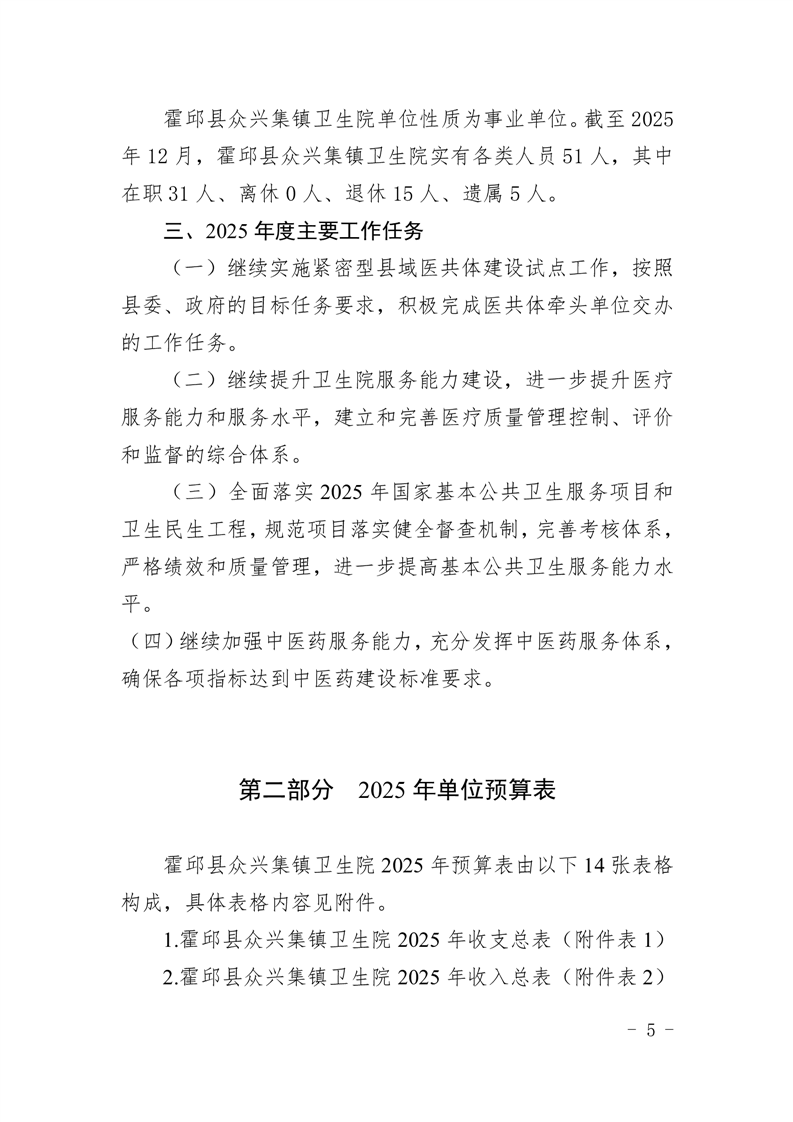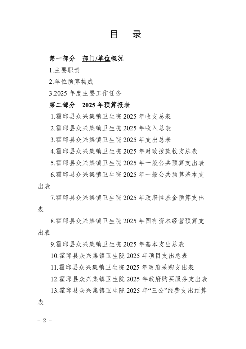 霍邱县众兴集镇卫生院2025年部门单位预算公开