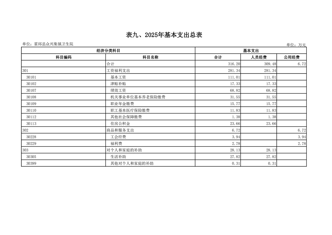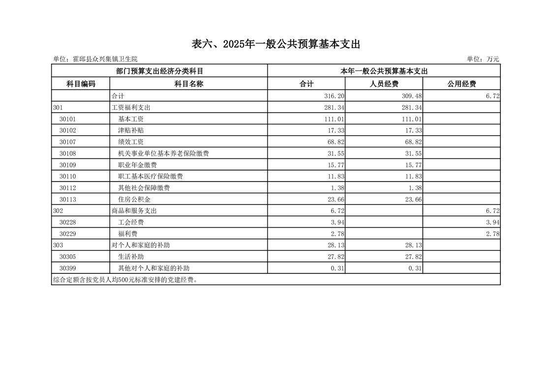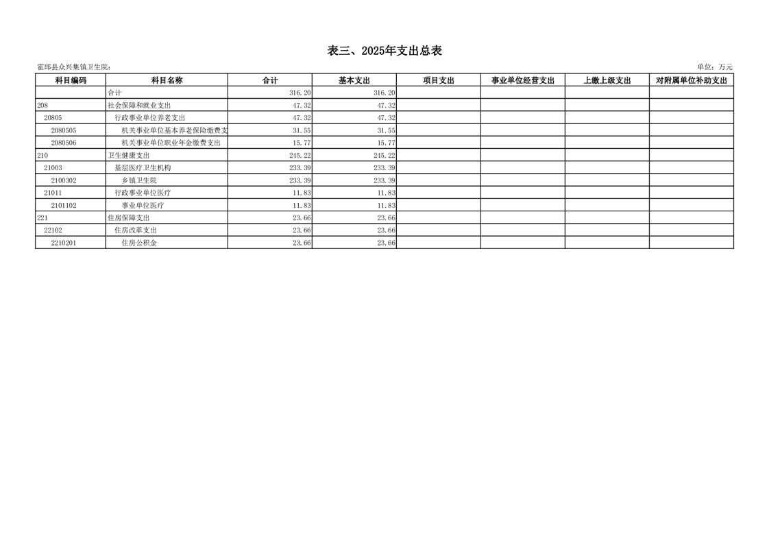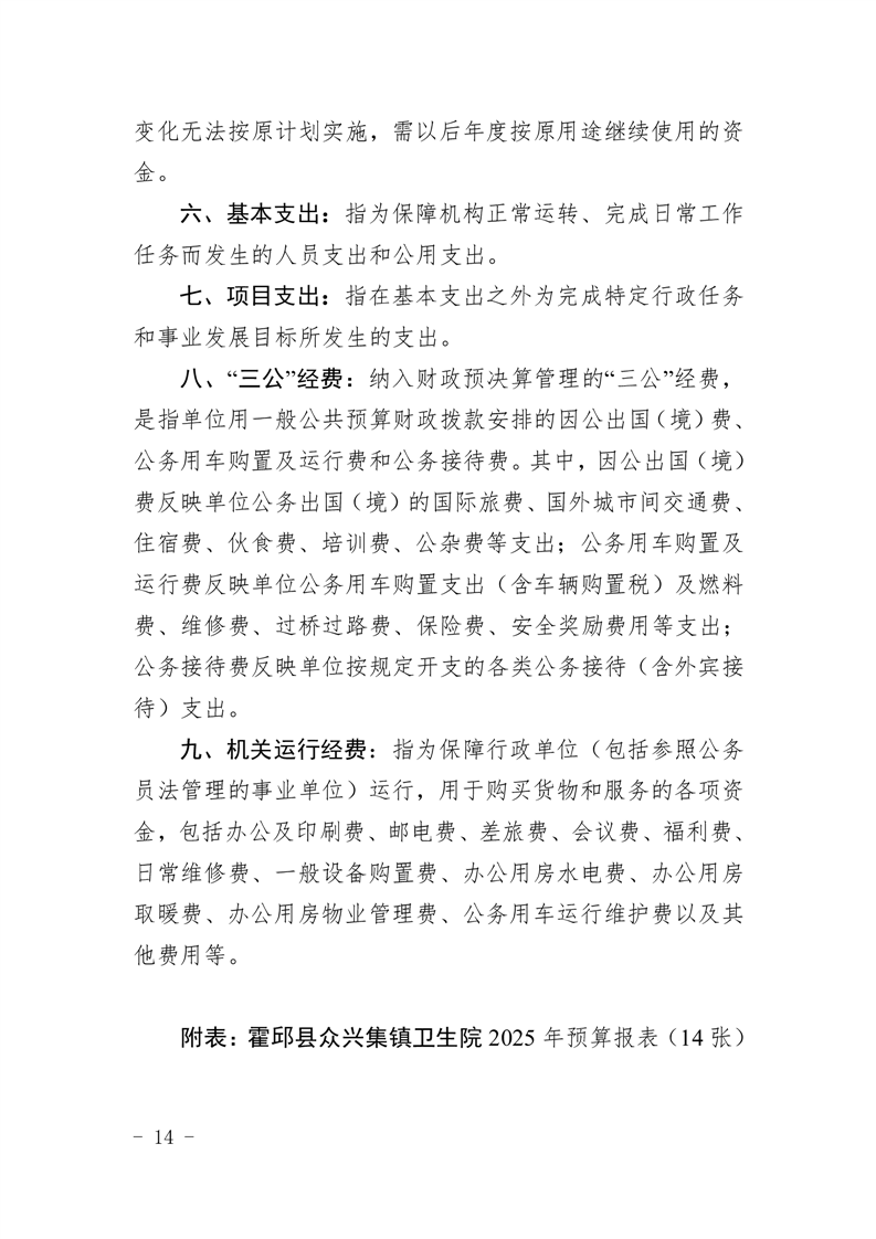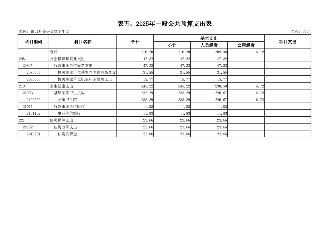 霍邱县众兴集镇卫生院2025年部门单位预算公开