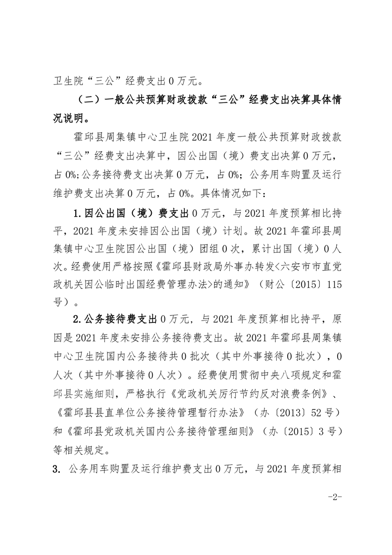 霍邱县周集镇中心卫生院2021年度一般公共预算财政拨款“三公”经费支出决算公开