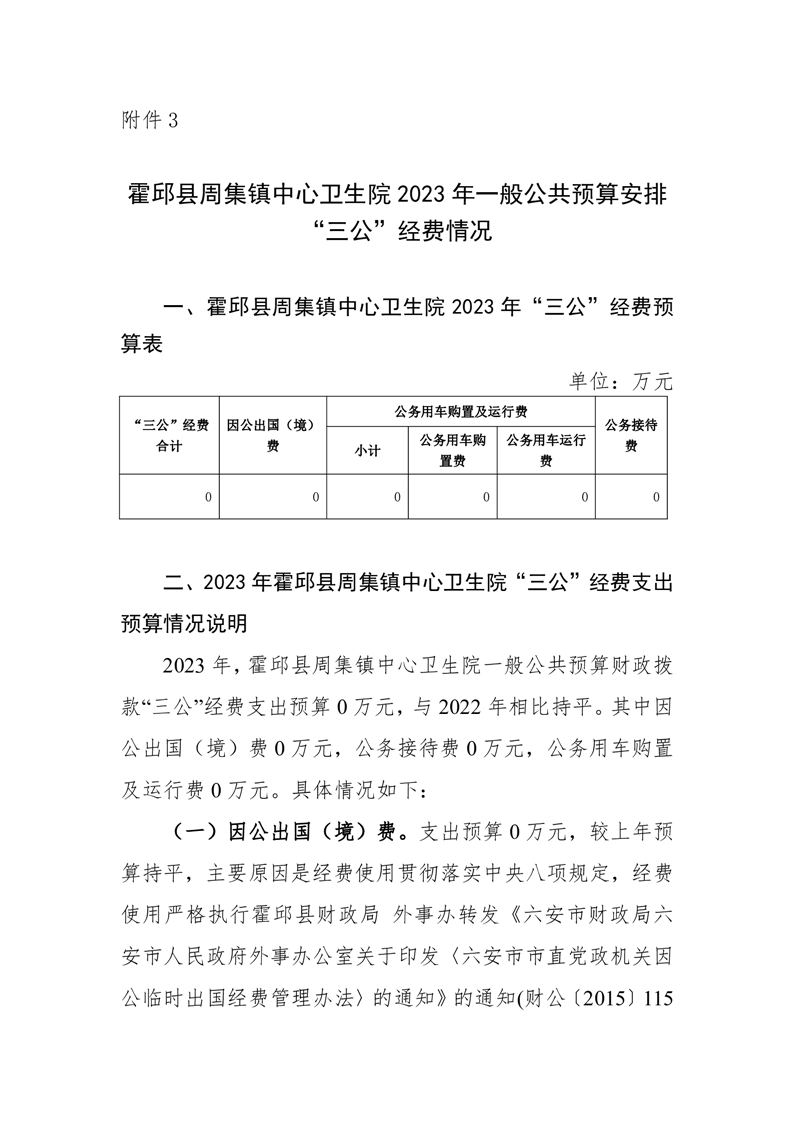 霍邱县周镇中心卫生院2023年一般公共预算安排“三公”经费情况公开表