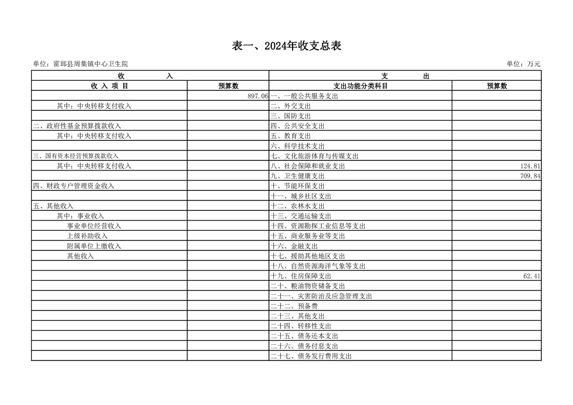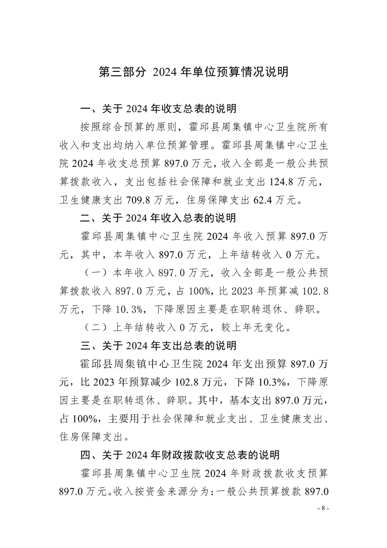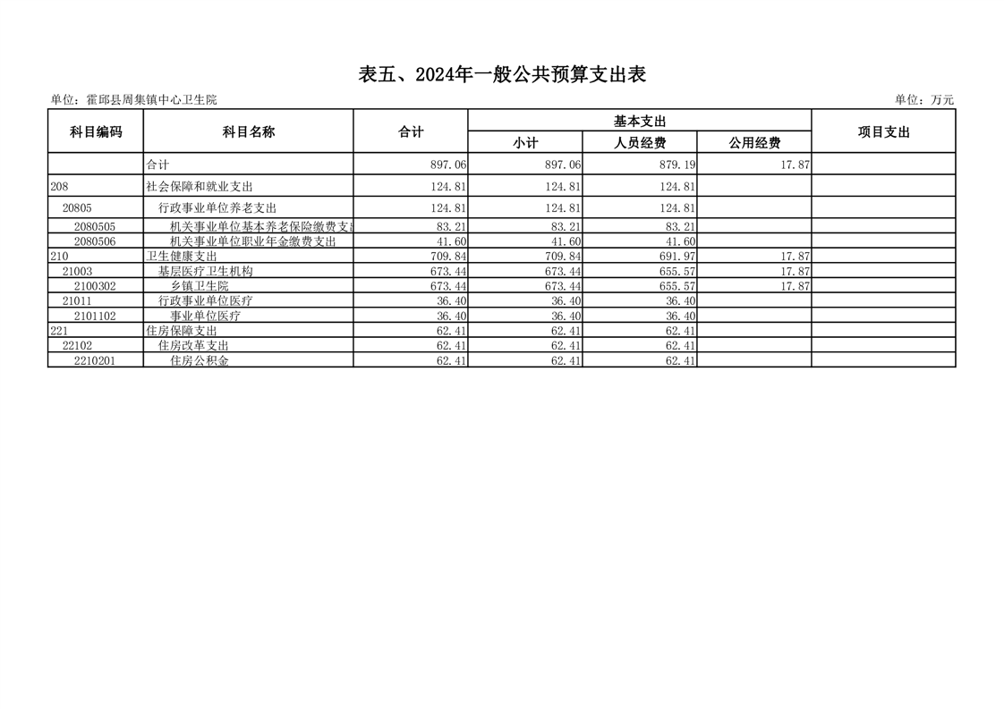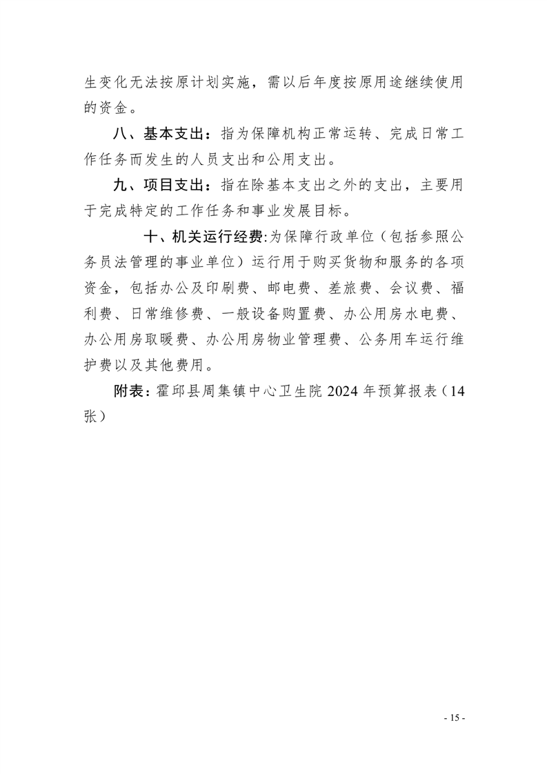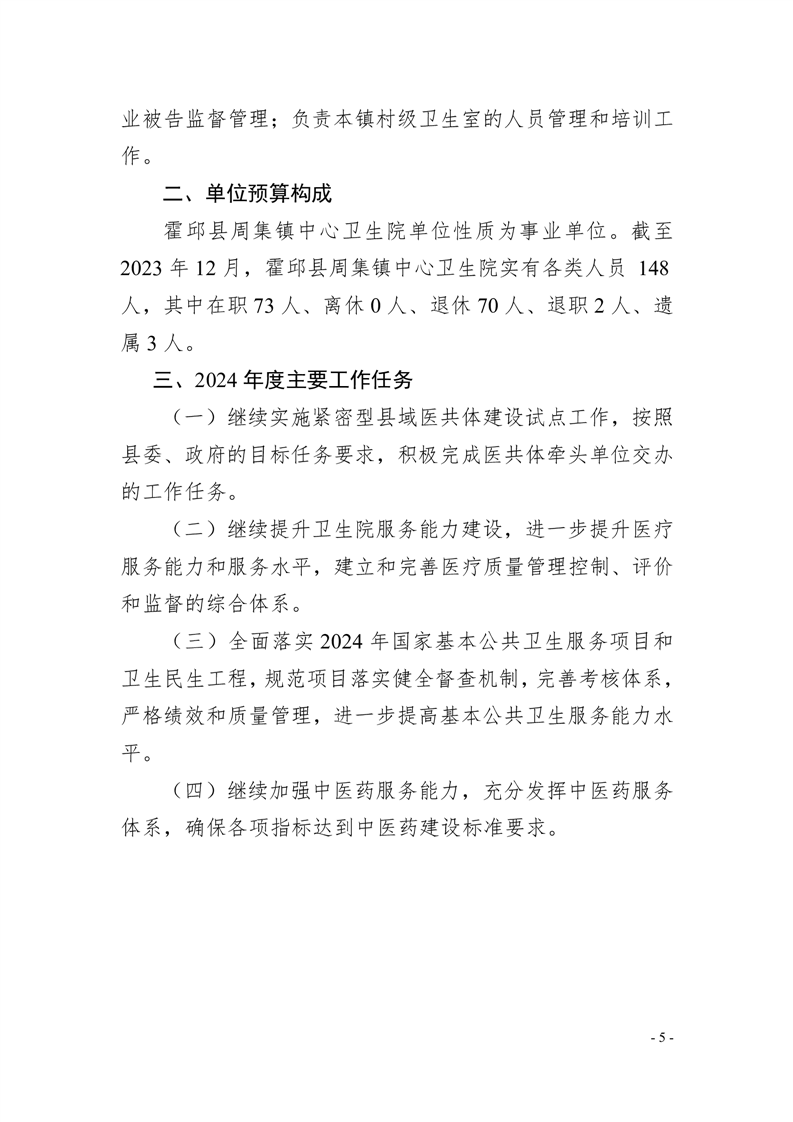 霍邱县周集镇中心卫生院2024年单位预算公开
