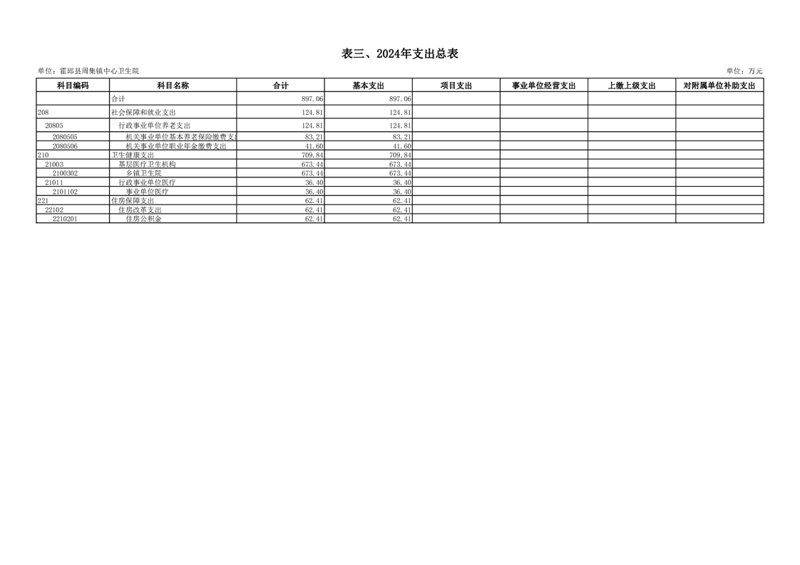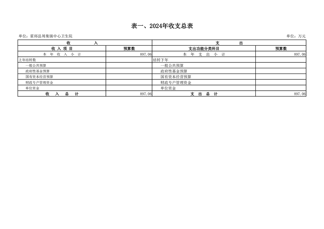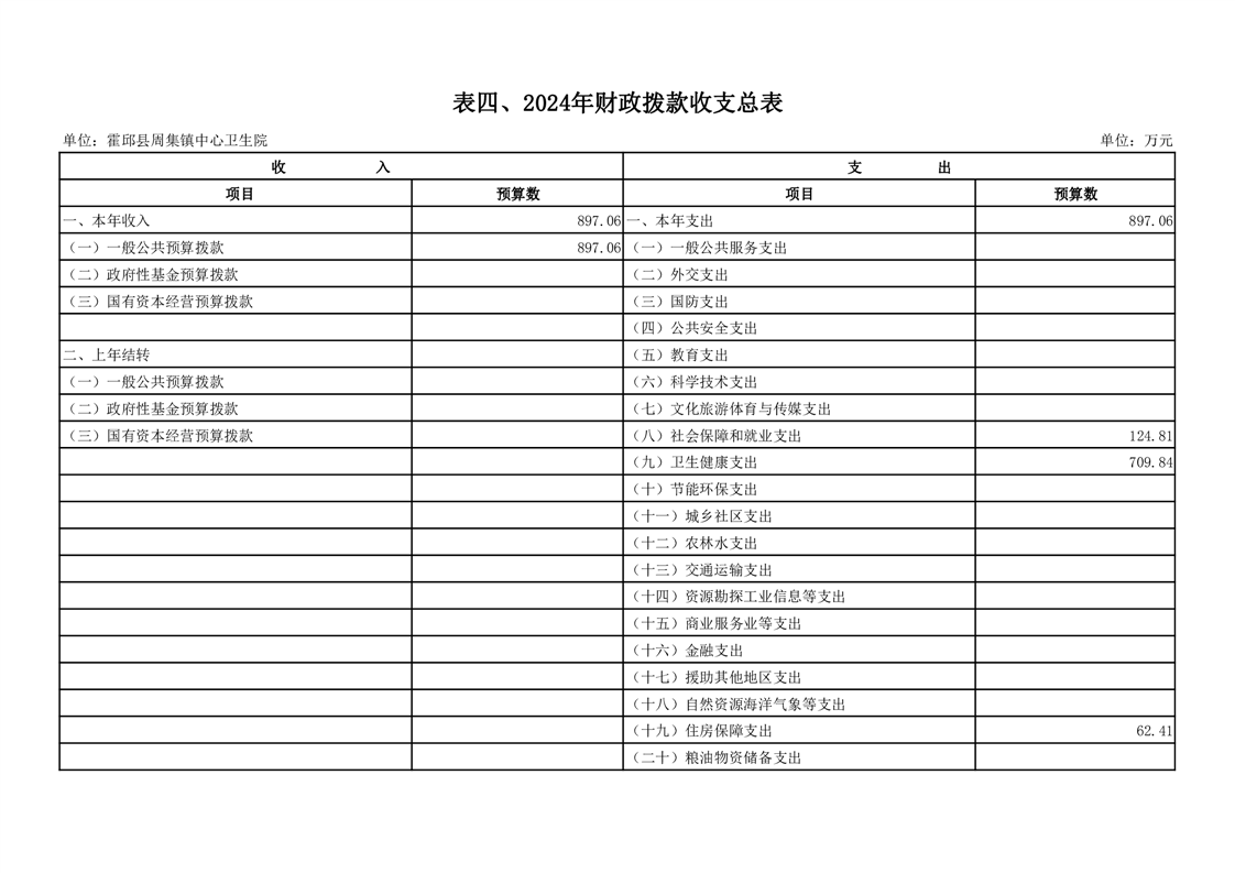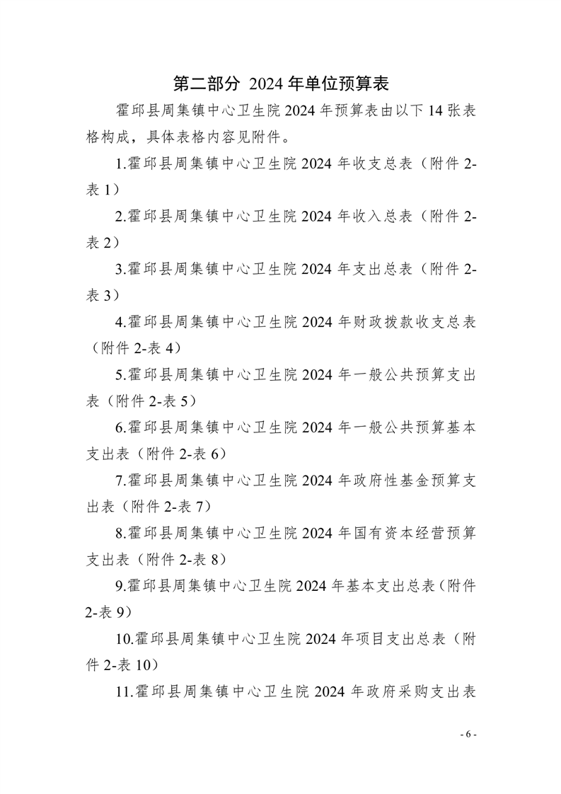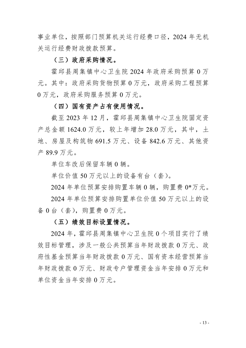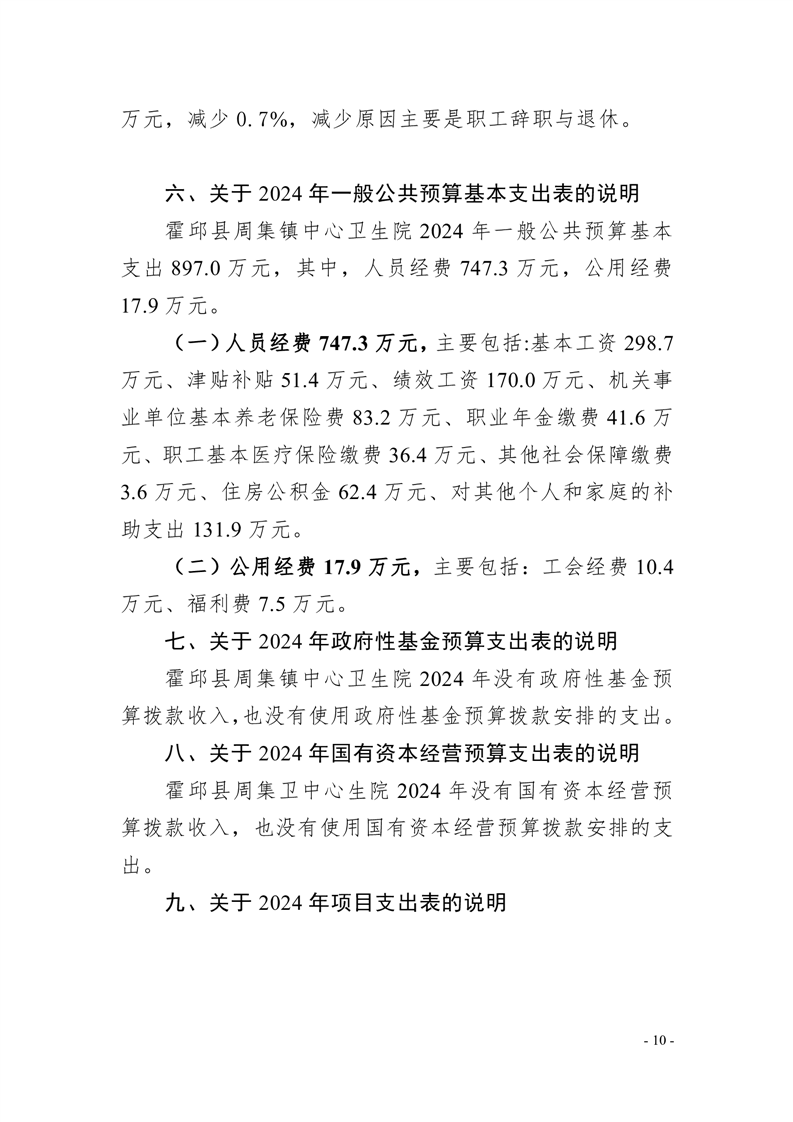 霍邱县周集镇中心卫生院2024年单位预算公开