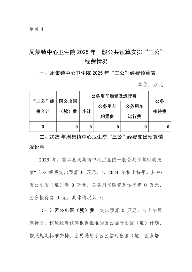 霍邱县周集镇卫生院2025年部门单位一般公共预算安排“三公”经费情况公开